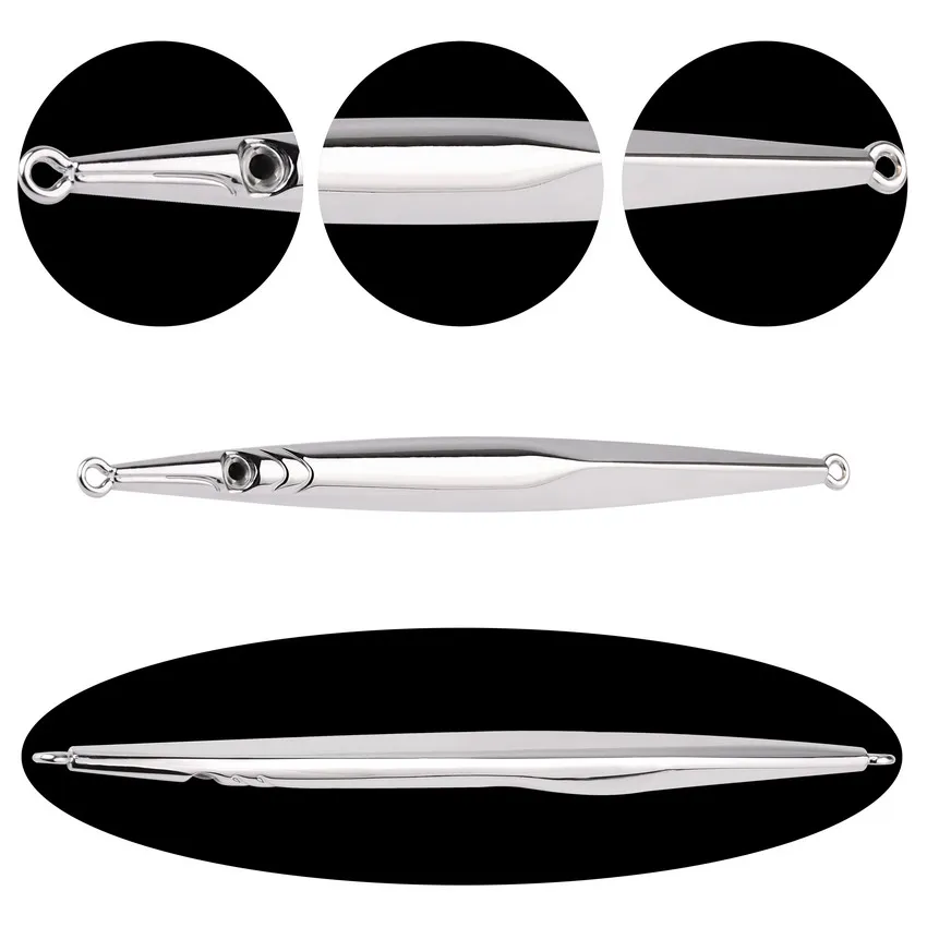 5pcs Long Slim Electroplated Spoon, Metal Jig Fishing Lure, Hard Bait, Bass Fishing Bait, Jigging Lure for Saltwater 60g 80g