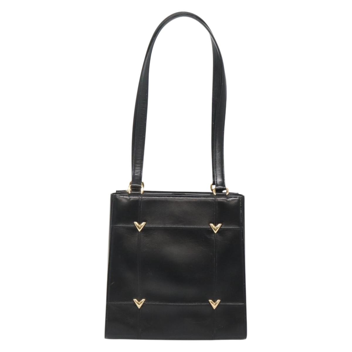 VALENTINO Shoulder Bag Leather Black Gold Auth BA4048