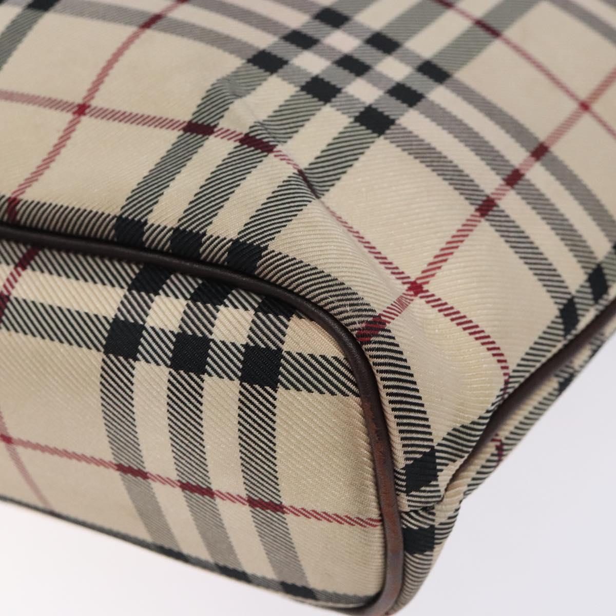BURBERRY Nova Check Hand Bag Canvas Beige Silver Auth 132453