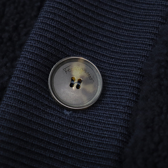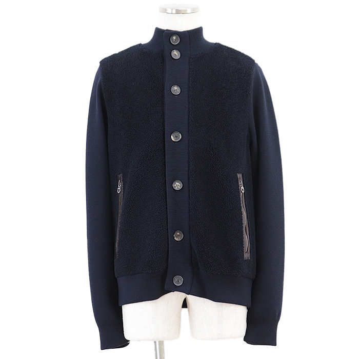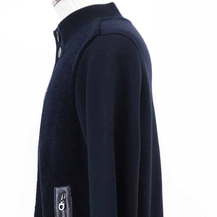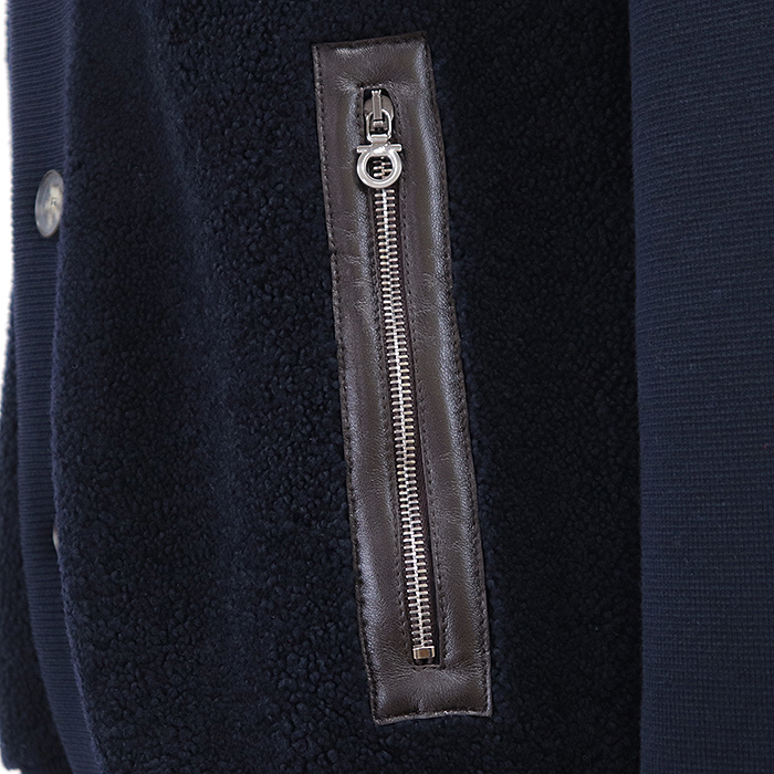 | Series | Salvatore Ferragamo Jacket, Lambskin Leather, Piping, Gancini Zip, Knit/Boa Lining, Men's L, Navy |