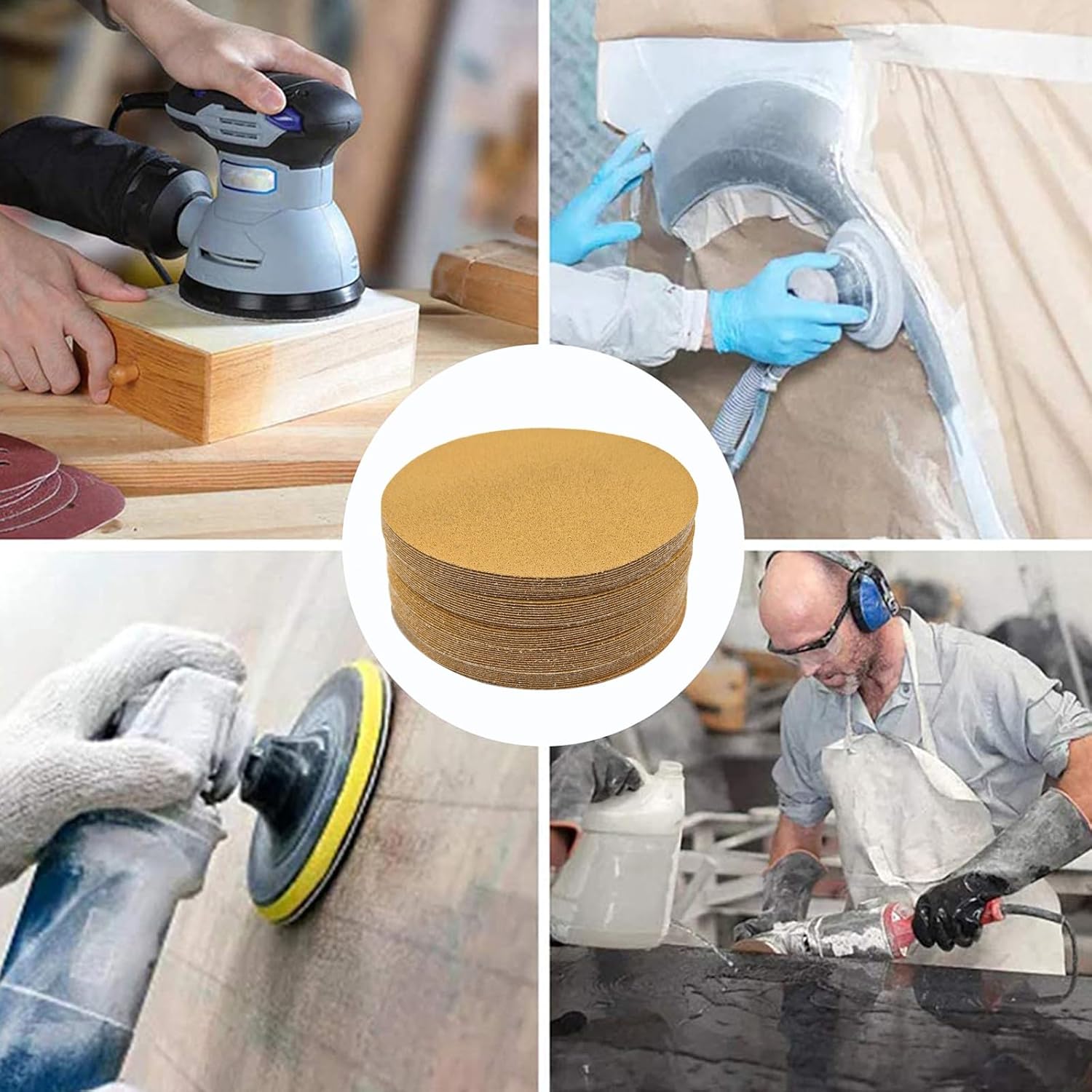 This 6-inch sanding disc is without holes. The Hook Loop design makes sandpaper installation and removal quicker and easier, maintaining strong adhesion and avoiding falling off during high-speed rotation.