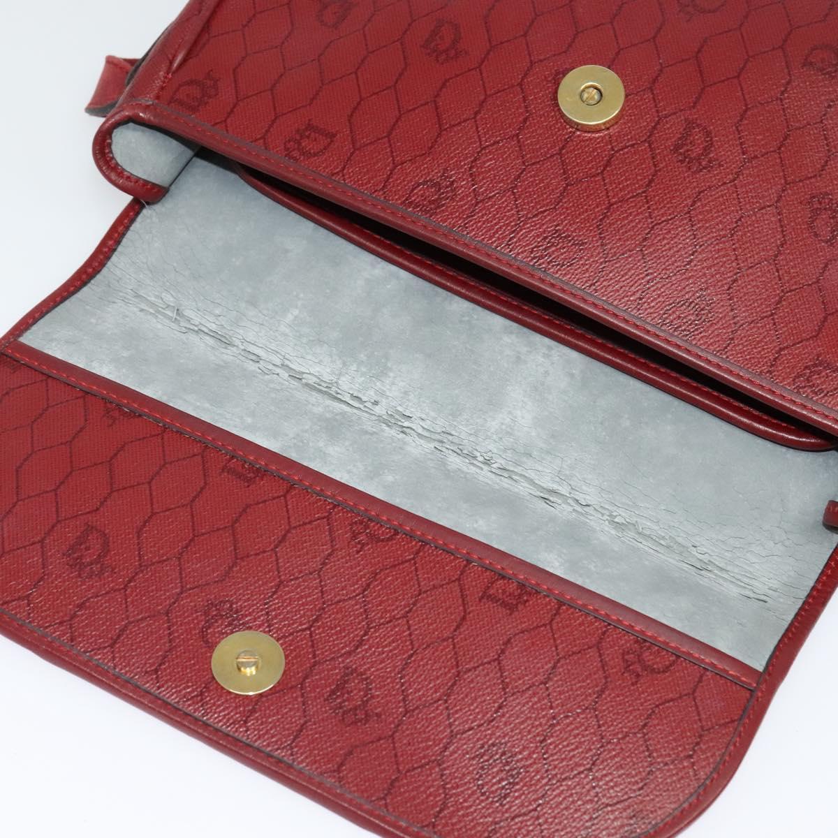 Christian Dior Honeycomb Canvas Shoulder Bag PVC Red Gold Auth 134766