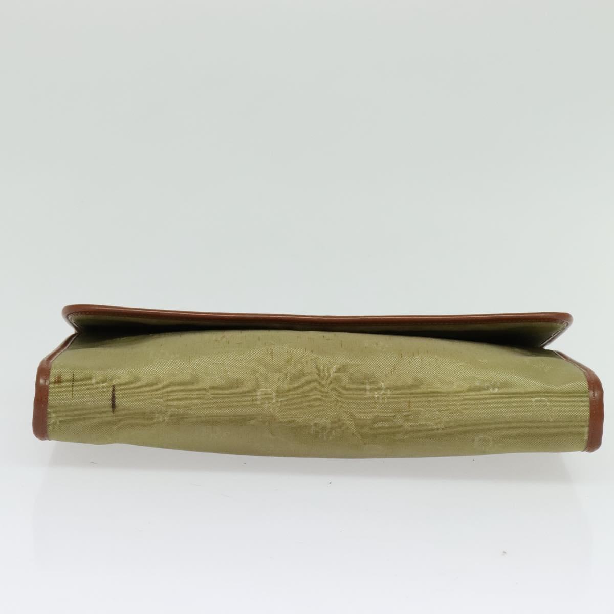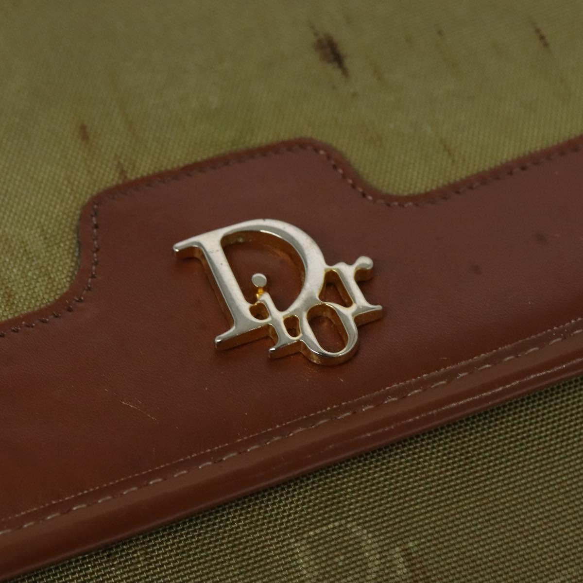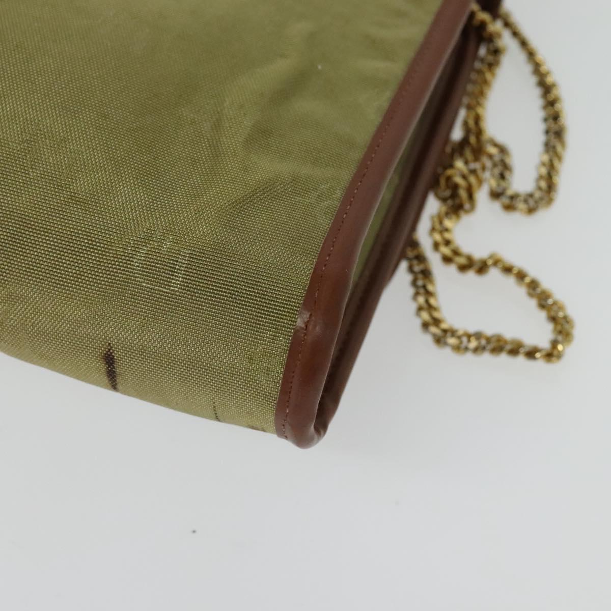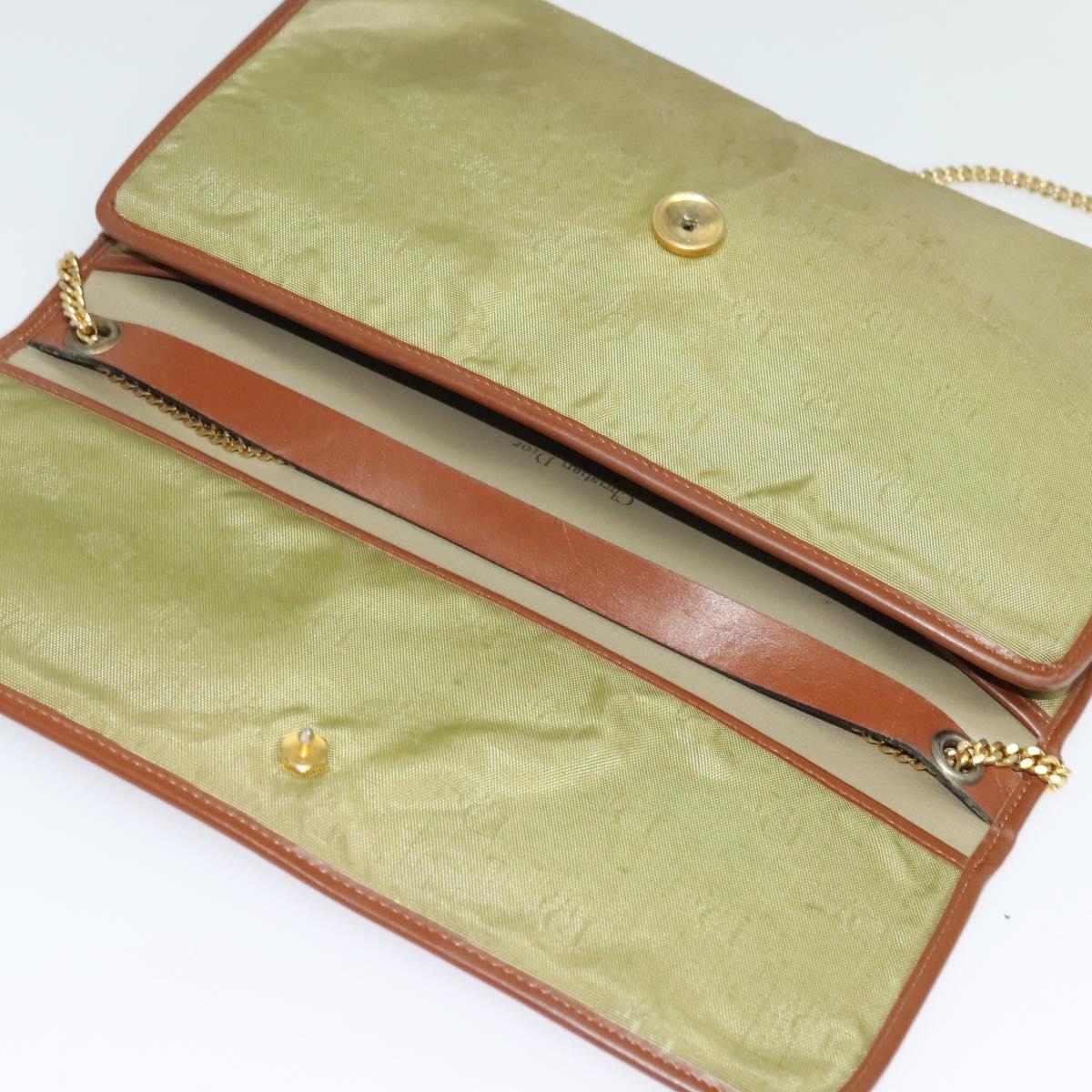 Christian Dior Chain Shoulder Bag Nylon Leather Beige Gold Auth sw1353