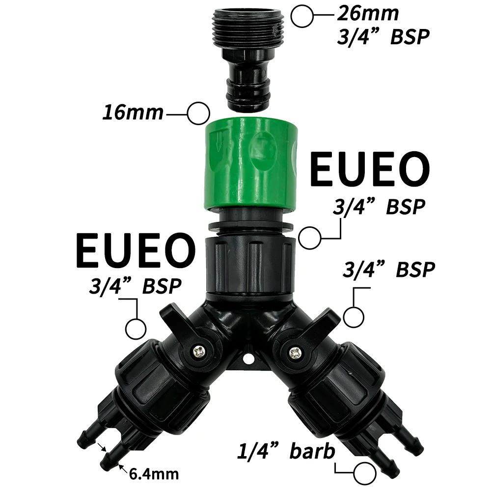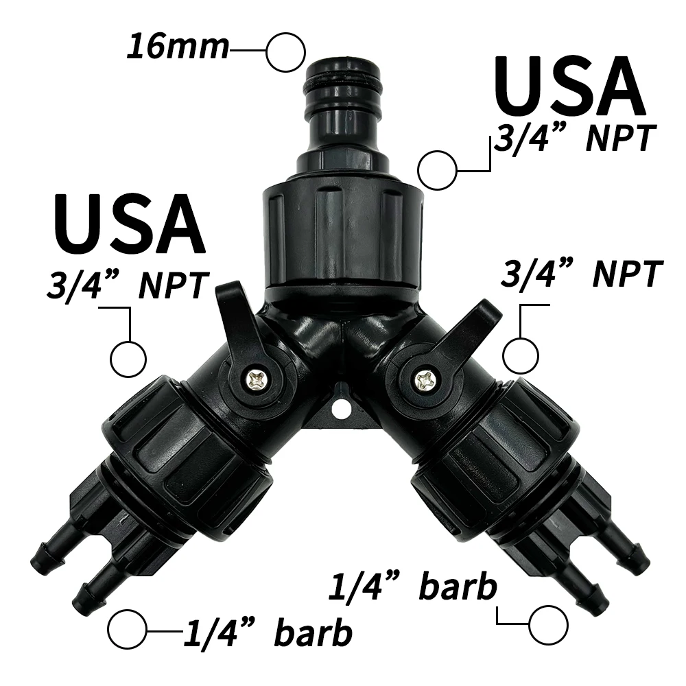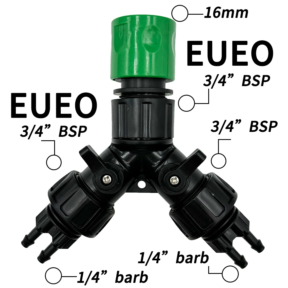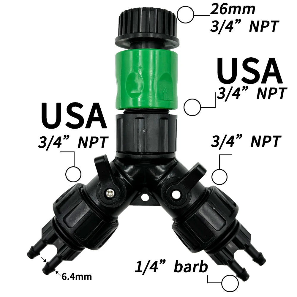 Tap Adapter Connector Drip Irrigation System 2-Way 4-Way Splitter EURO USA 3/4'' to 1/4'' Pipe for Garden Watering Hose