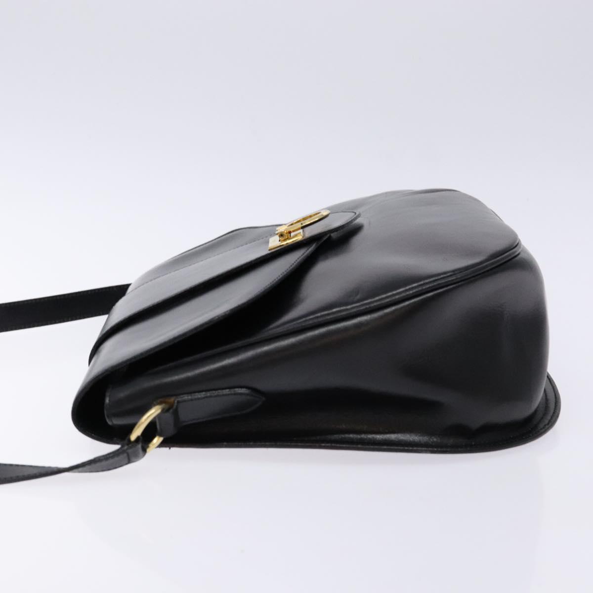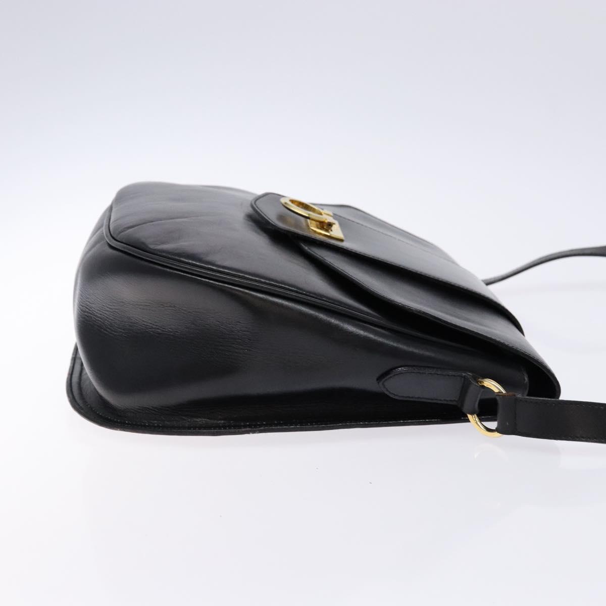 Salvatore Ferragamo Gancini Shoulder Bag Leather Black Gold Auth BA4219