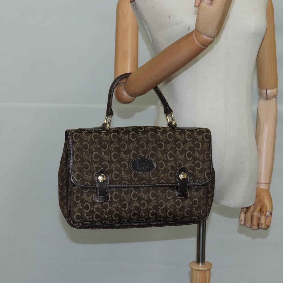 CELINE C Sulky Hand Bag Canvas Brown Auth 97779
