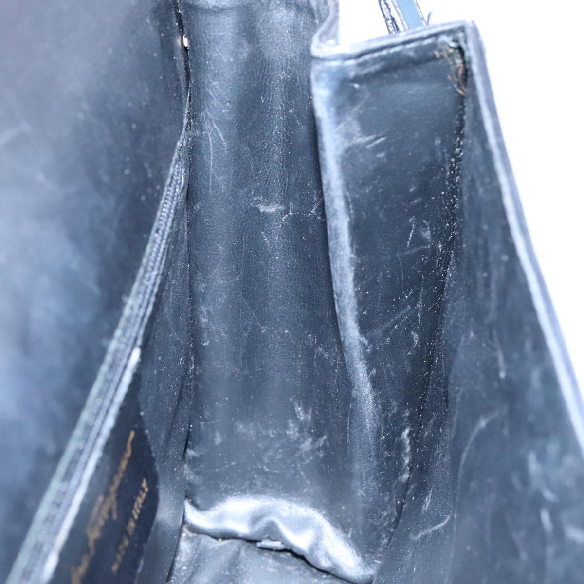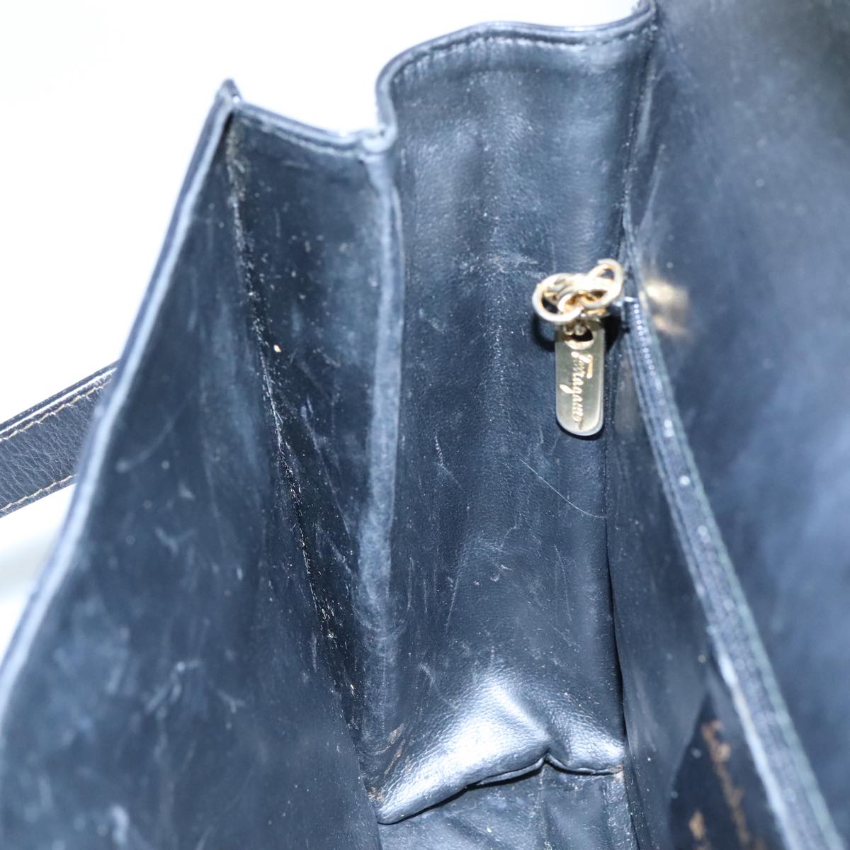 Salvatore Ferragamo Gancini Shoulder Bag Leather Black Auth 106734