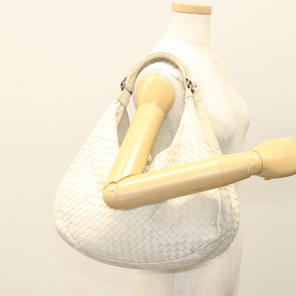 BOTTEGA VENETA INTRECCIATO Campana Shoulder Bag Leather White Auth 133575