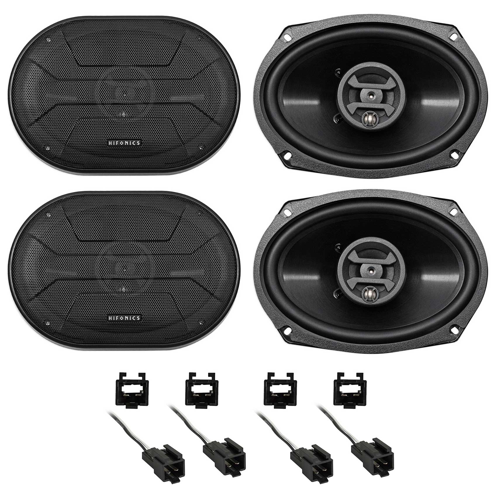 Package: (2) Pairs of Hifonics ZS693 6" x 9" 1600 Watt Car Speakers + (2) Metra 72-6512 Speaker Harness Connector Adapters