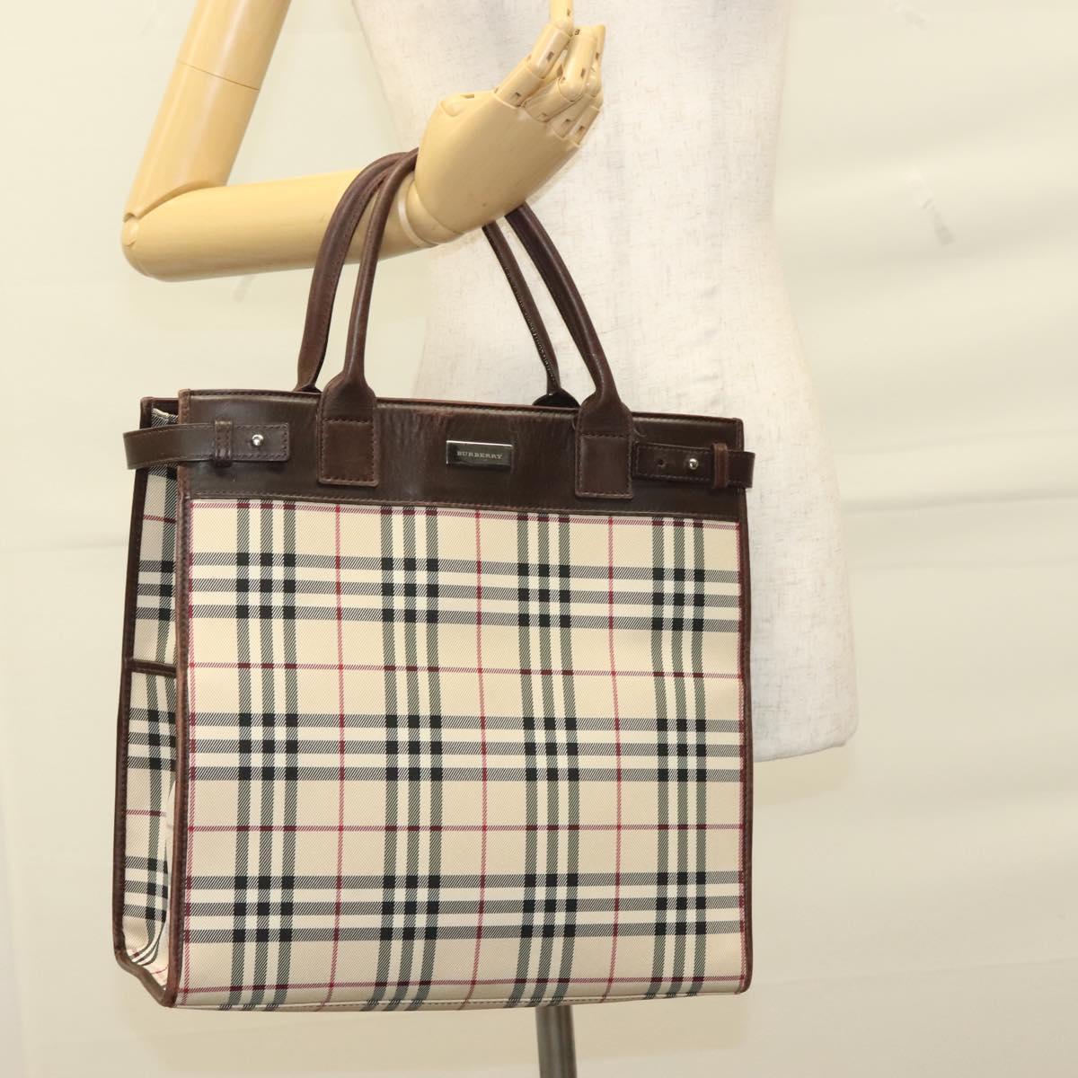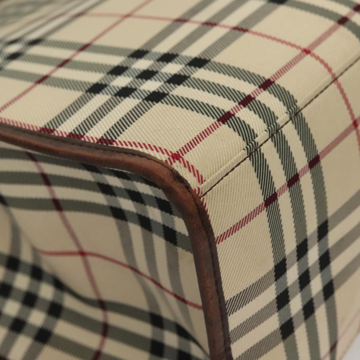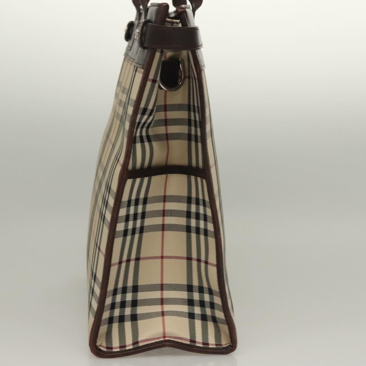 BURBERRY Nova Check Hand Bag Canvas Beige Silver Auth 133280
