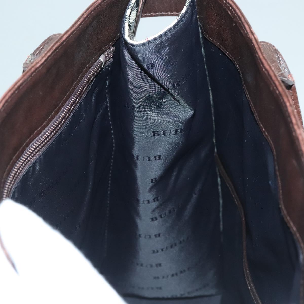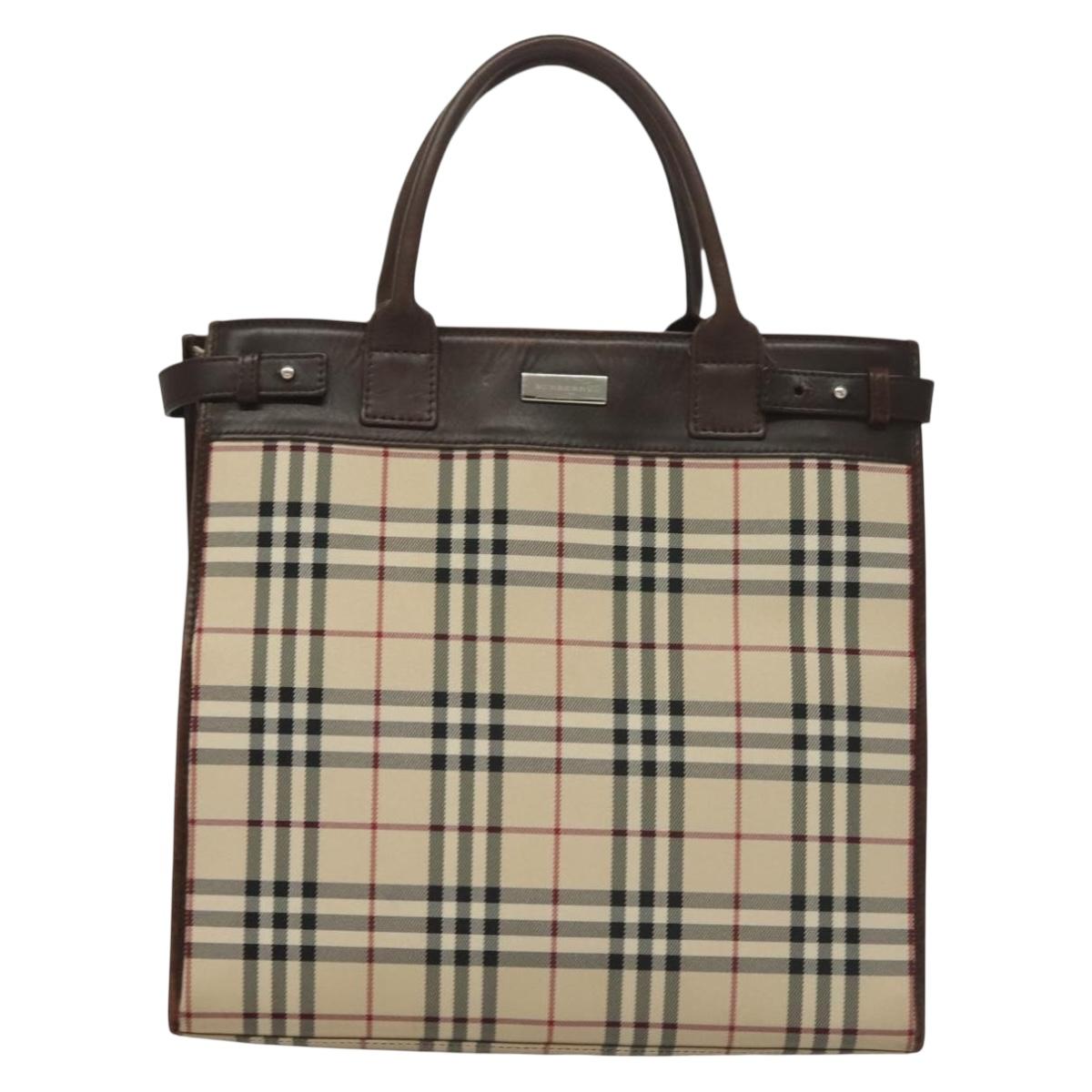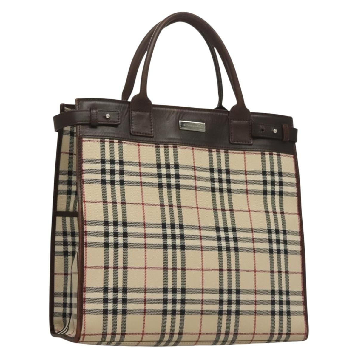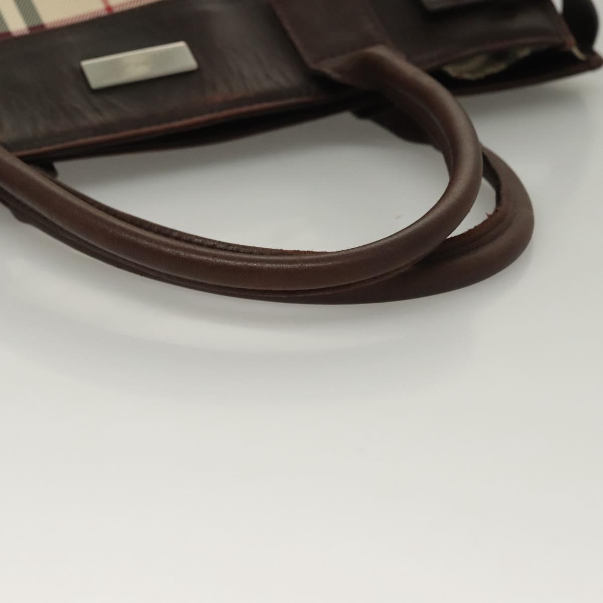 BURBERRY Nova Check Hand Bag Canvas Beige Silver Auth 133280