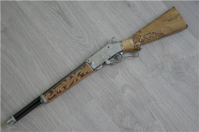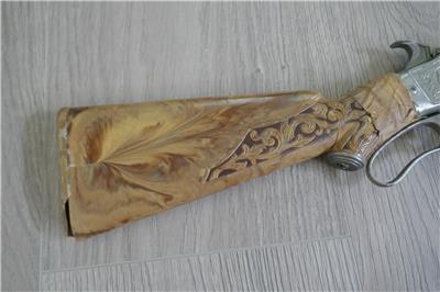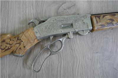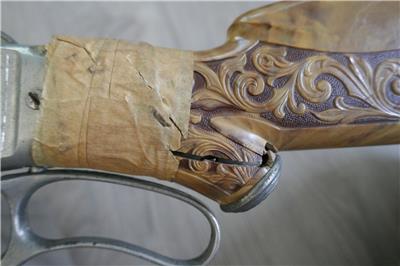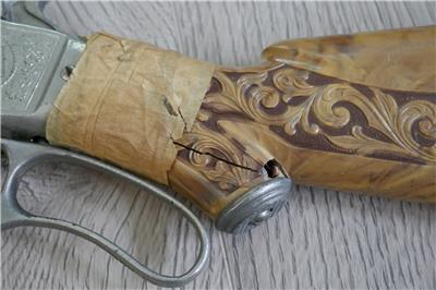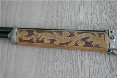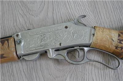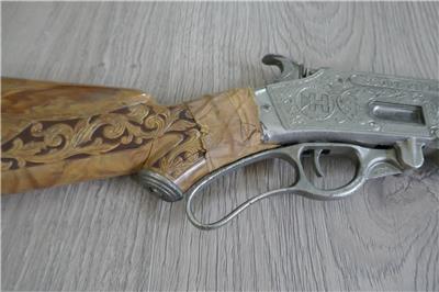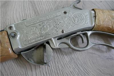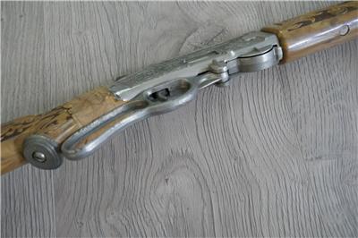 This is a vintage Hubley Scout Rifle. The stock is damage and cracked (see photos) but the rest of the rife is good. The mechanism is good and works. Please view listing images. What you see is what you get.