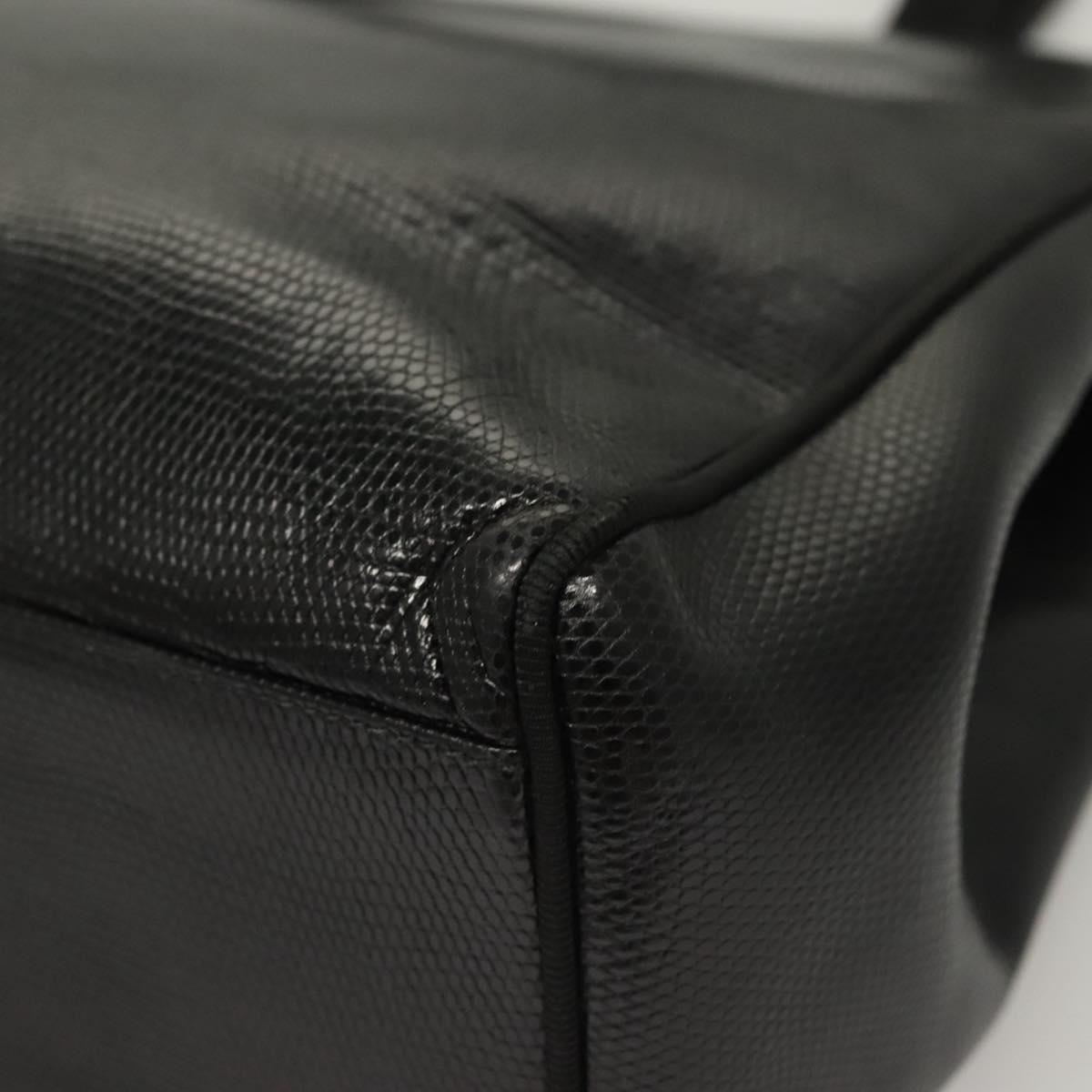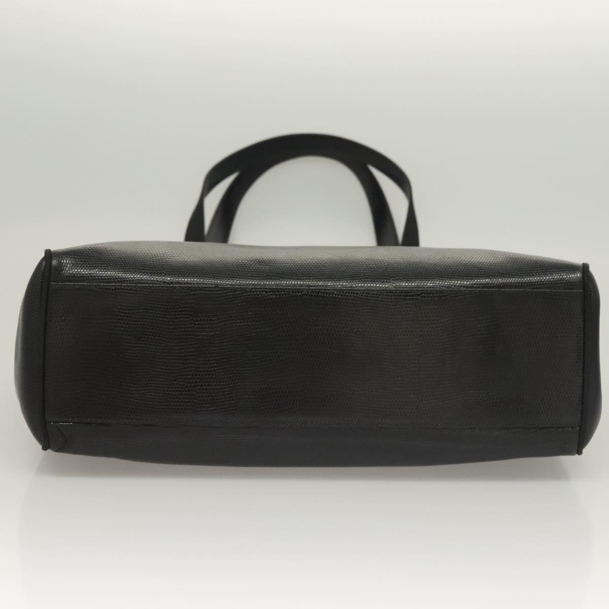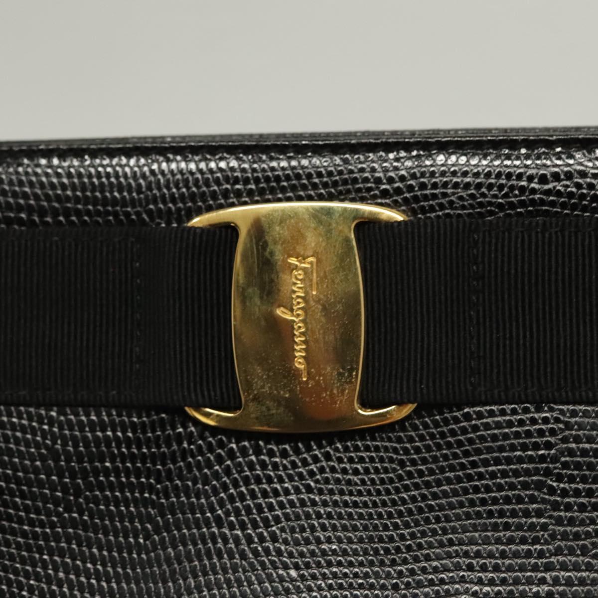Salvatore Ferragamo Tote Bag Embossed Leather Black Gold Auth BA4507