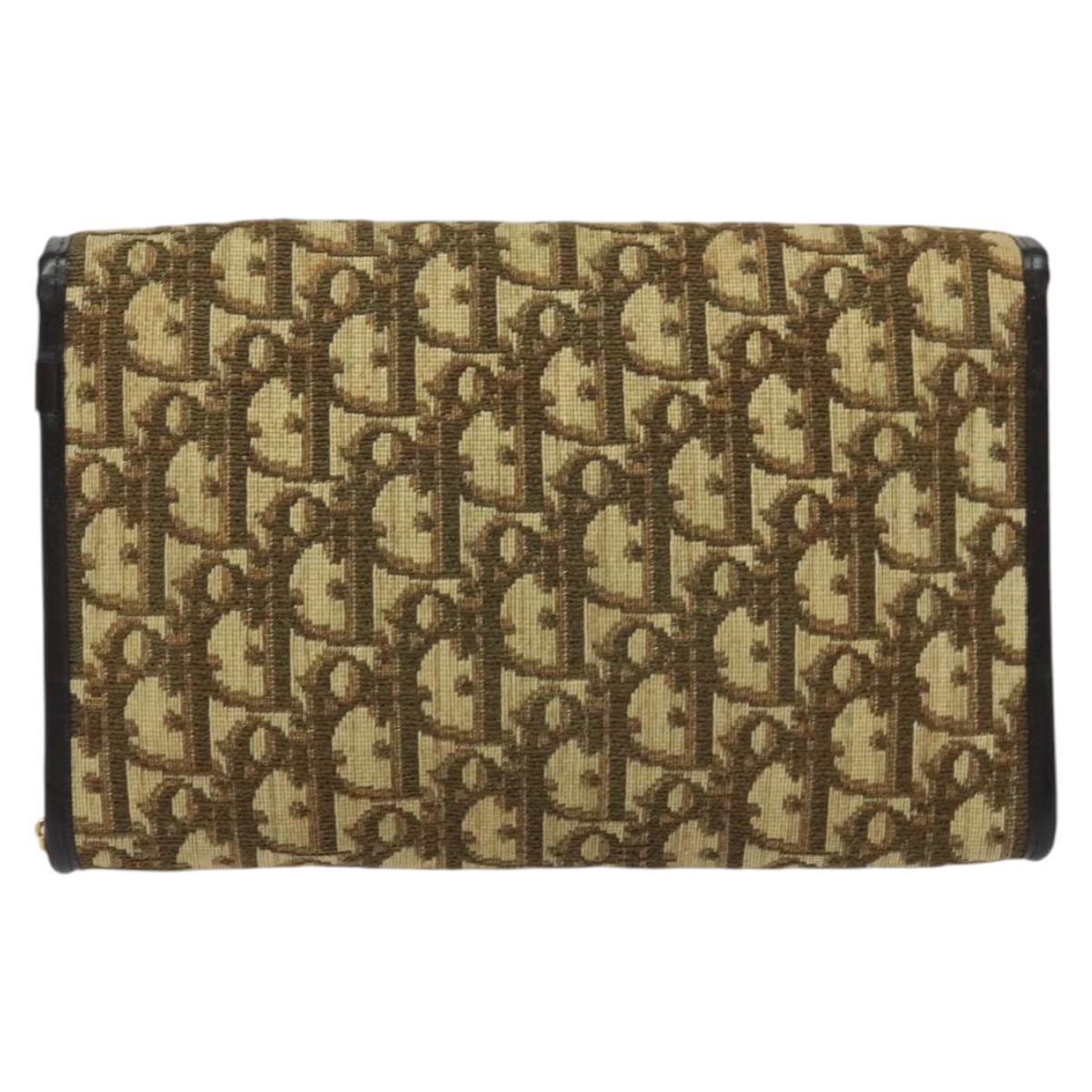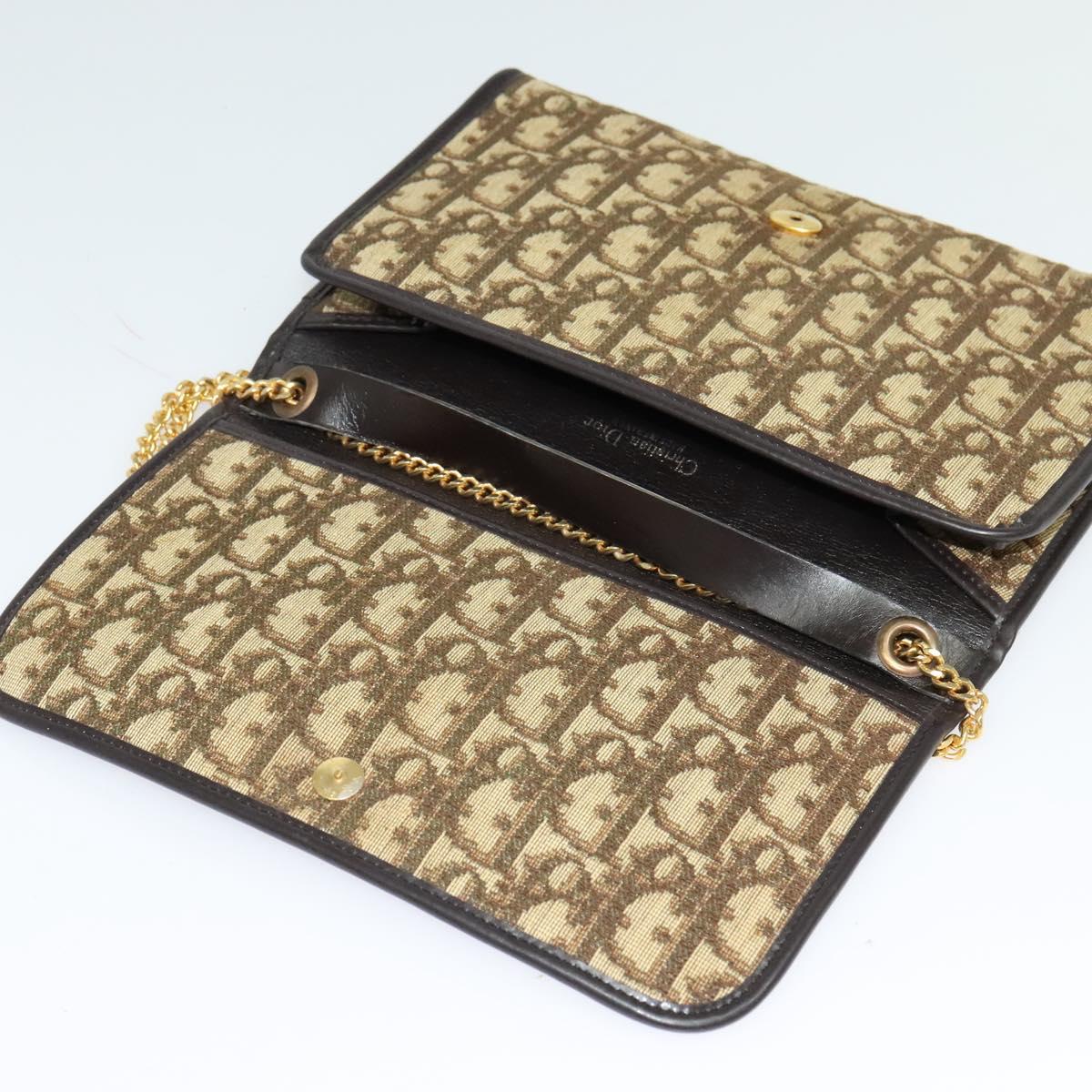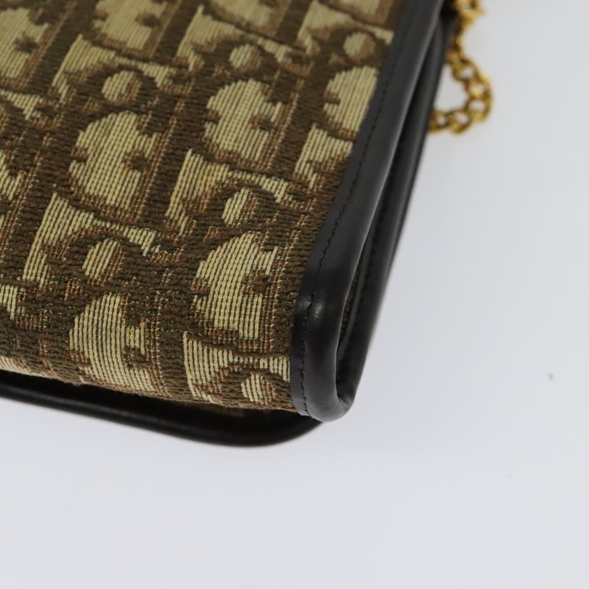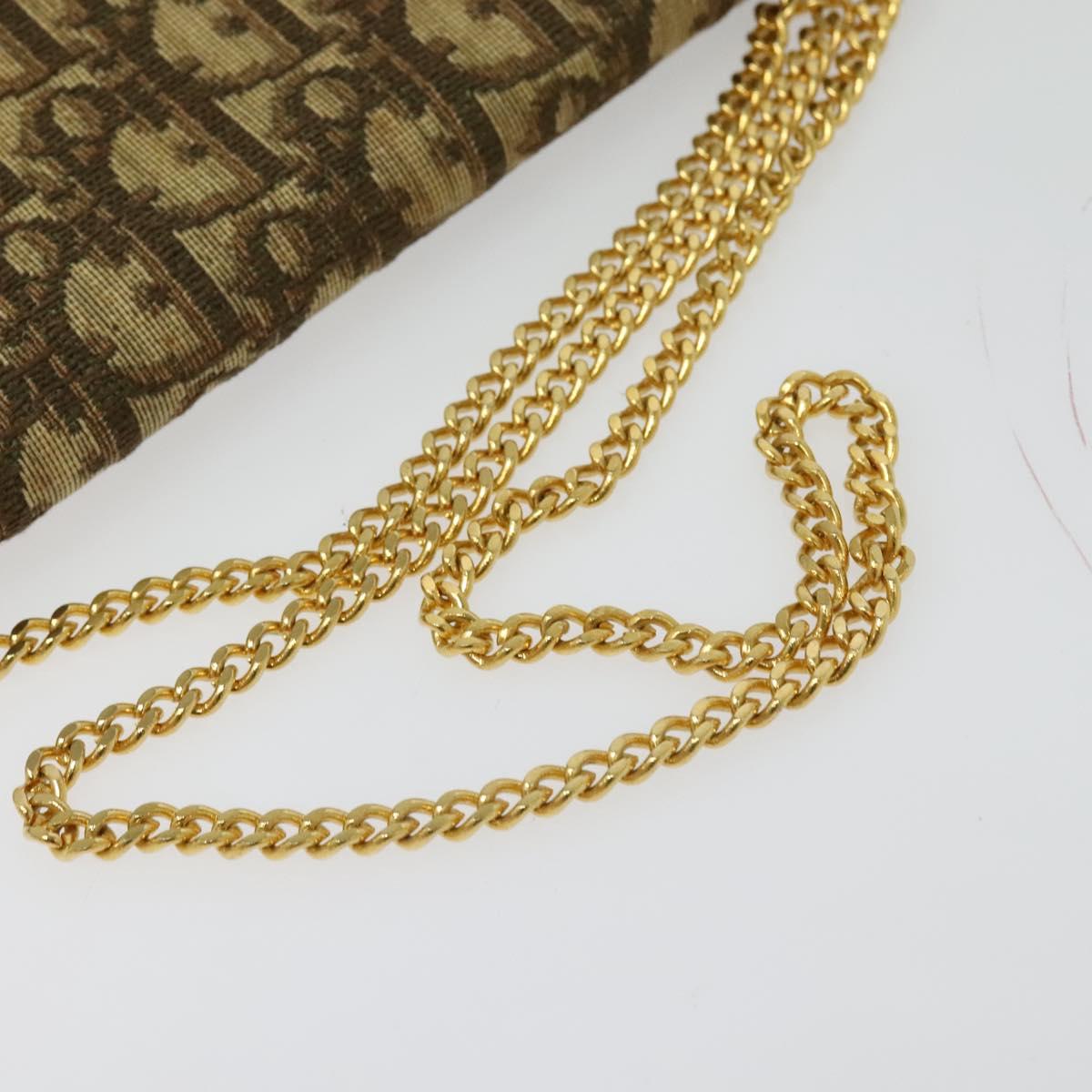 Christian Dior Trotter Canvas Chain Shoulder Bag Beige Gold Auth 136388
