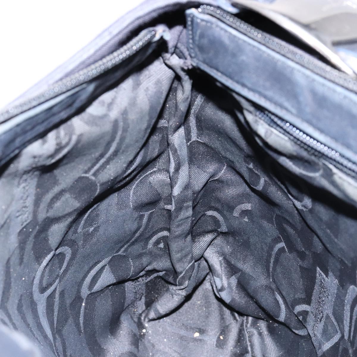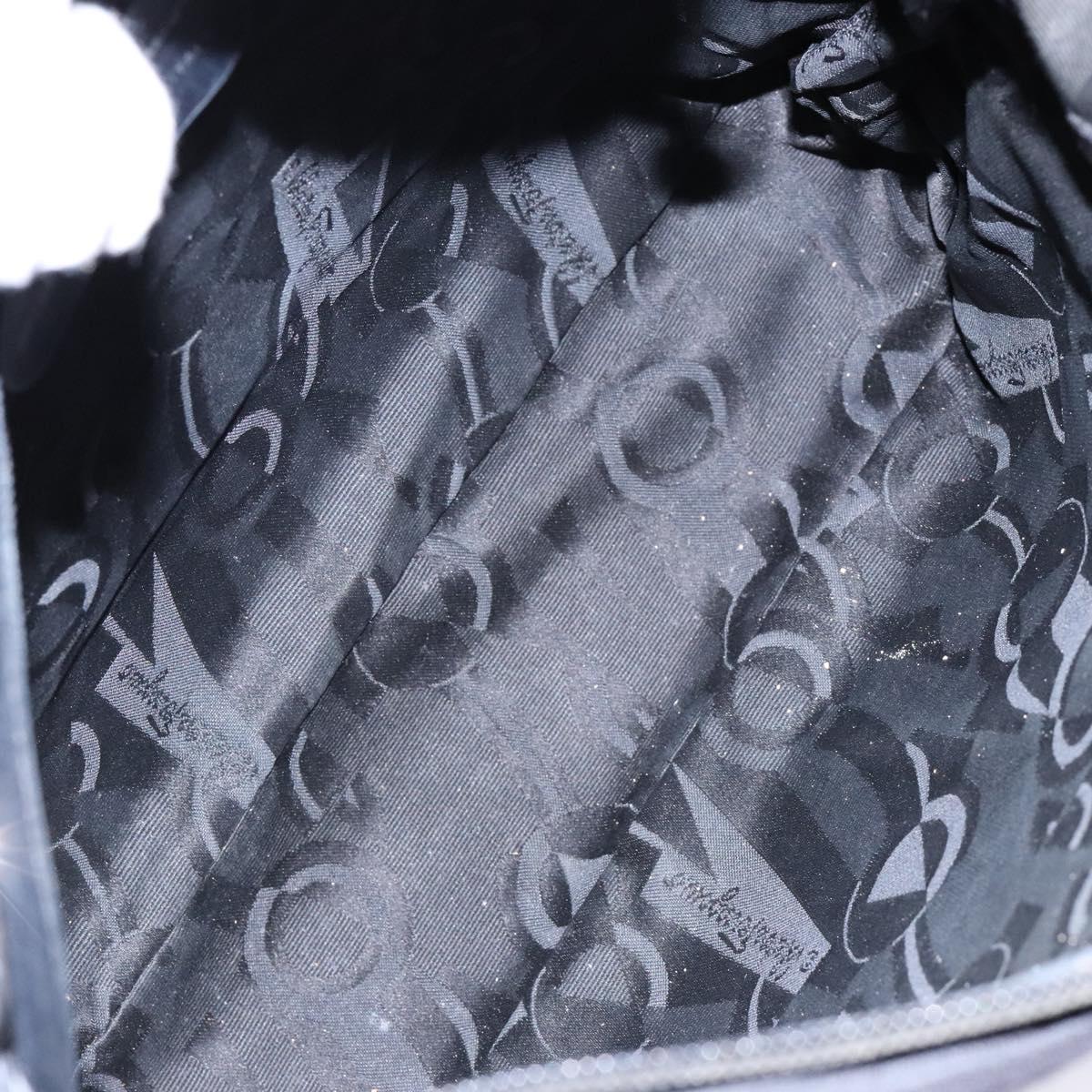 Salvatore Ferragamo Vala Shoulder Bag Canvas Leather Black Silver Auth bs28513