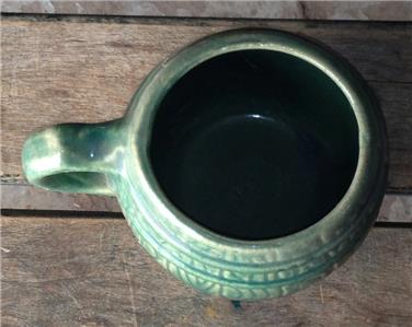 McCoy Pottery Barrel Shaped Tankard Mug. Green Glaze. 4 3/4" high 3" wide. Good condition.