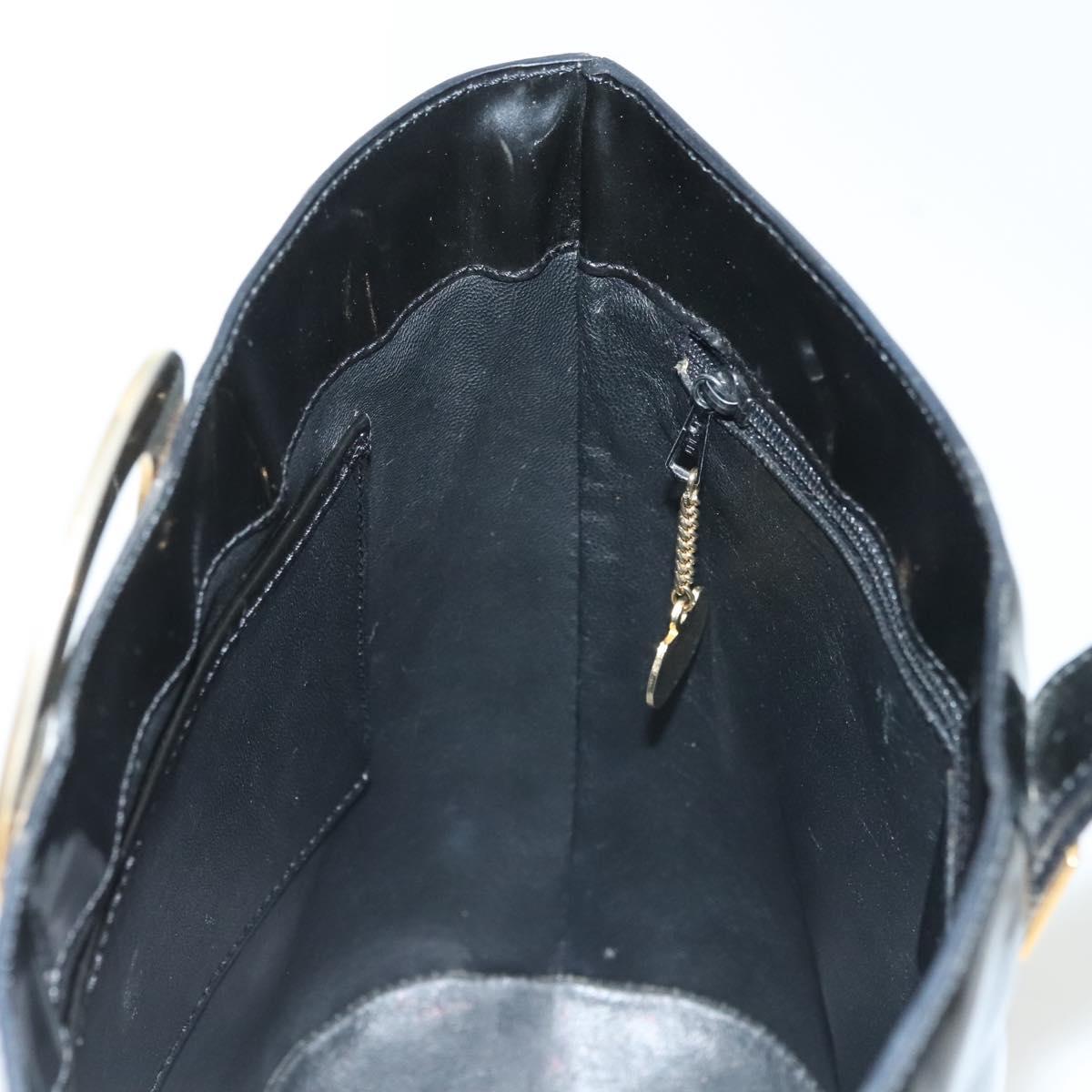 CELINE Circle Shoulder Bag Enamel Black Gold Auth 137438