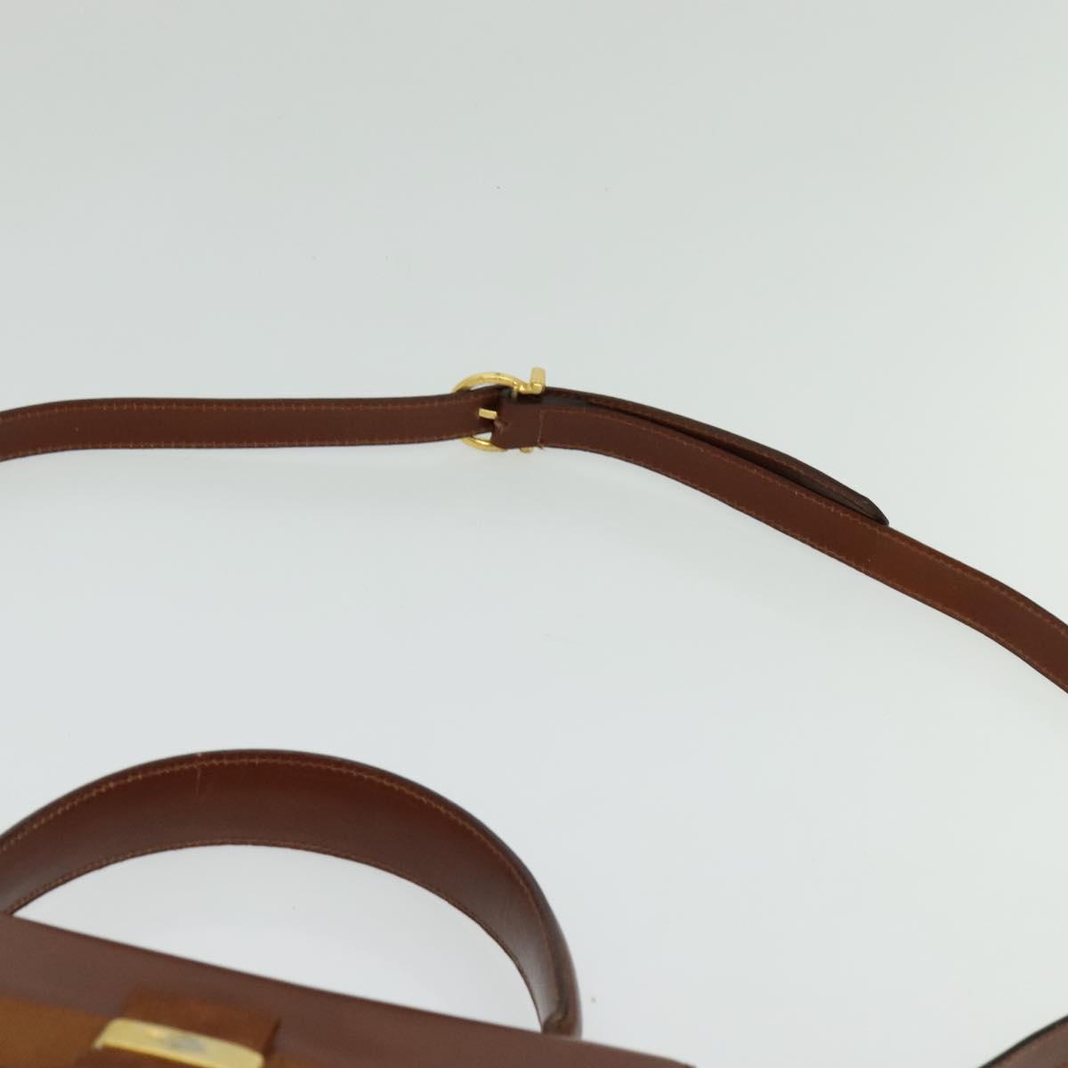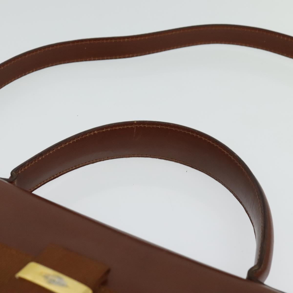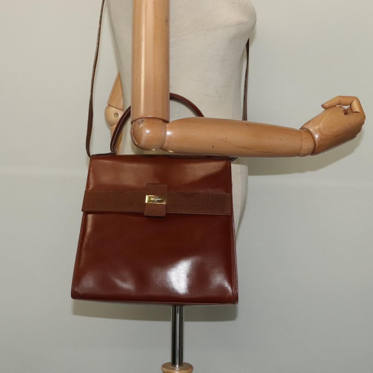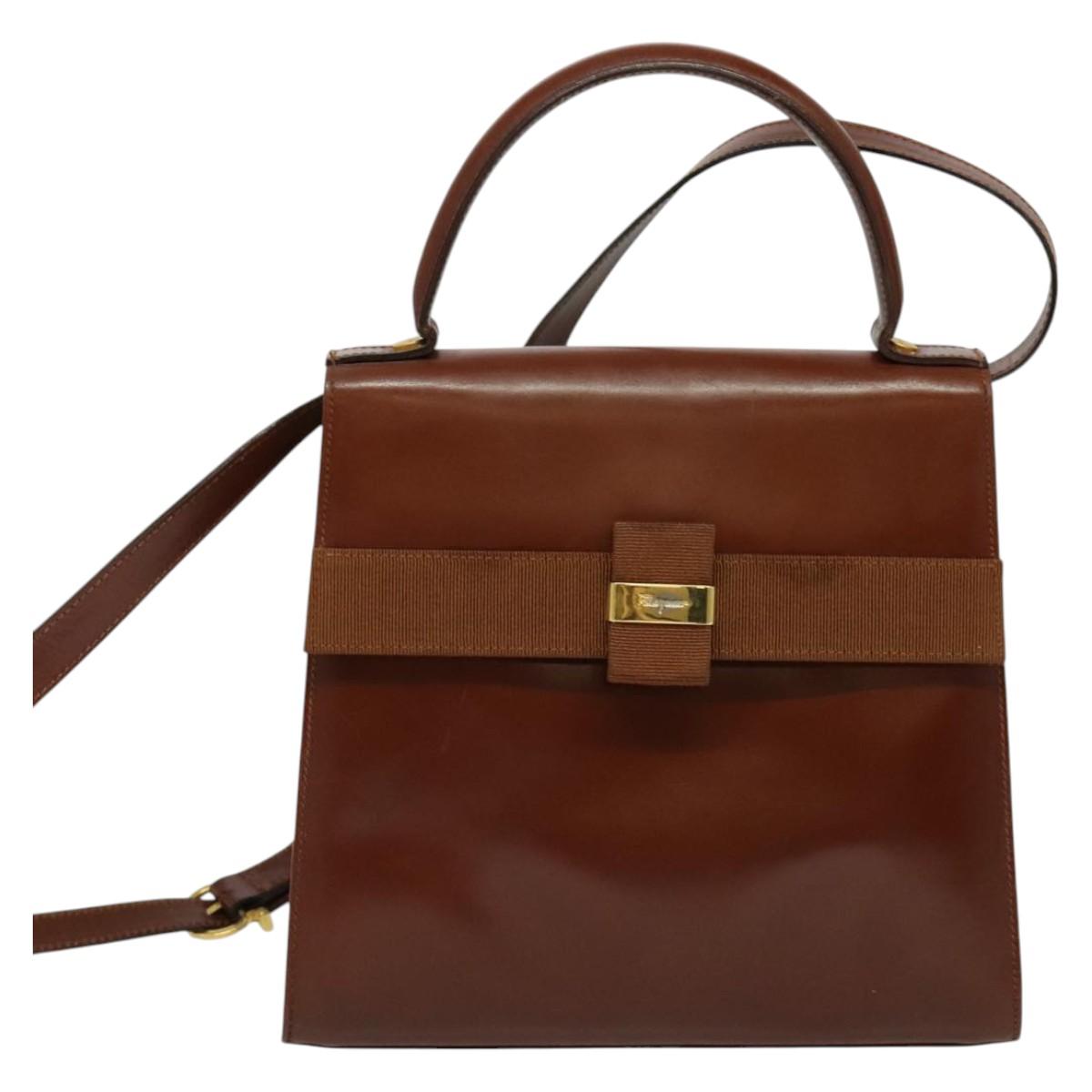 Salvatore Ferragamo Vala Hand Bag Leather 2way Brown Gold Auth bs28714