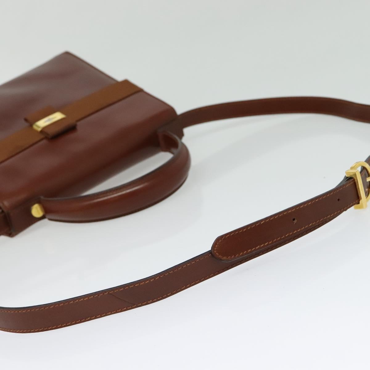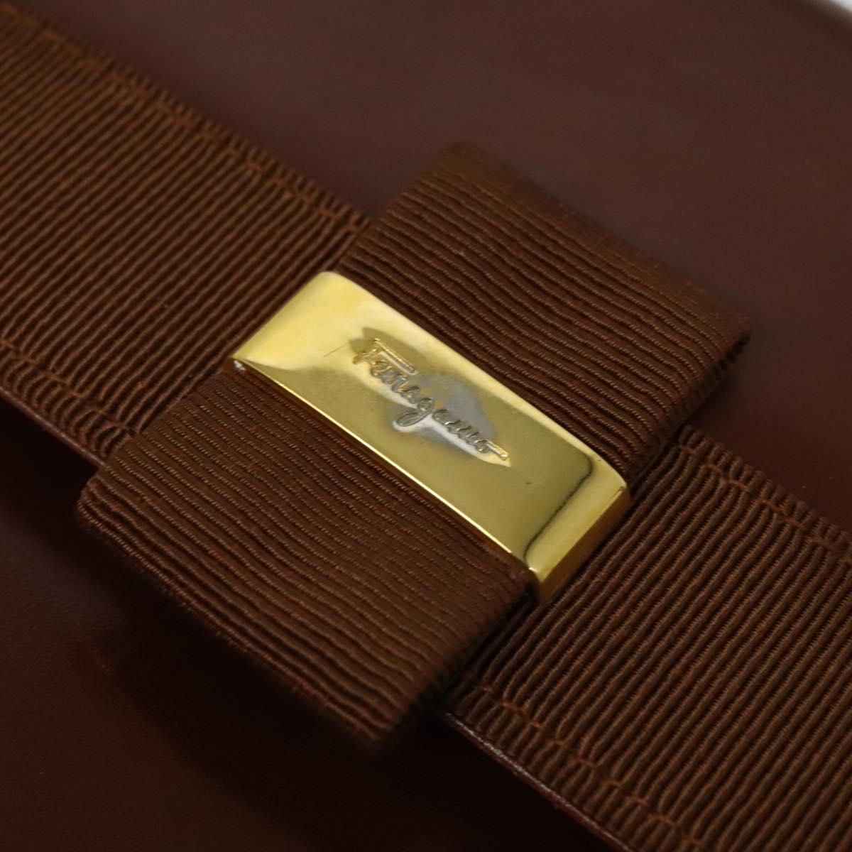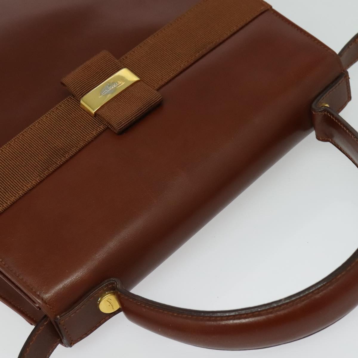 Salvatore Ferragamo Vala Hand Bag Leather 2way Brown Gold Auth bs28714