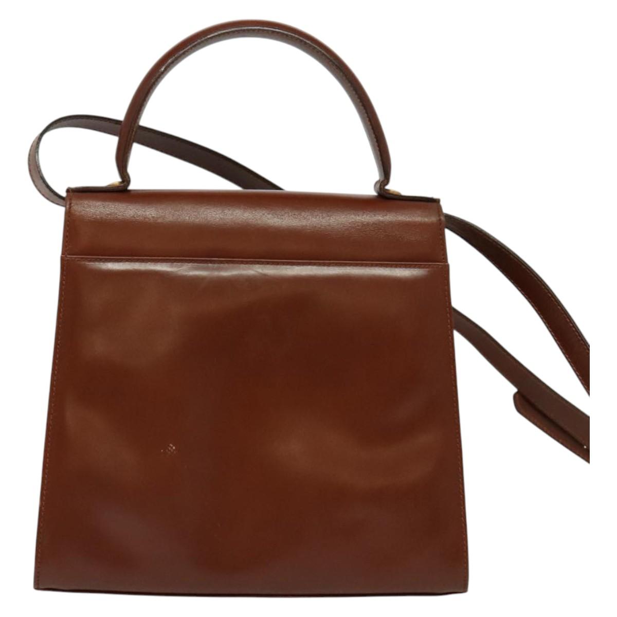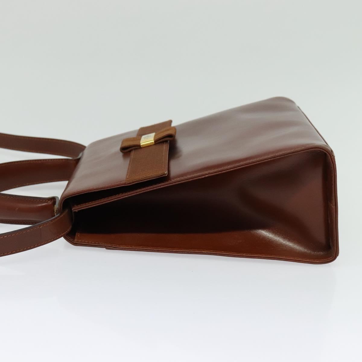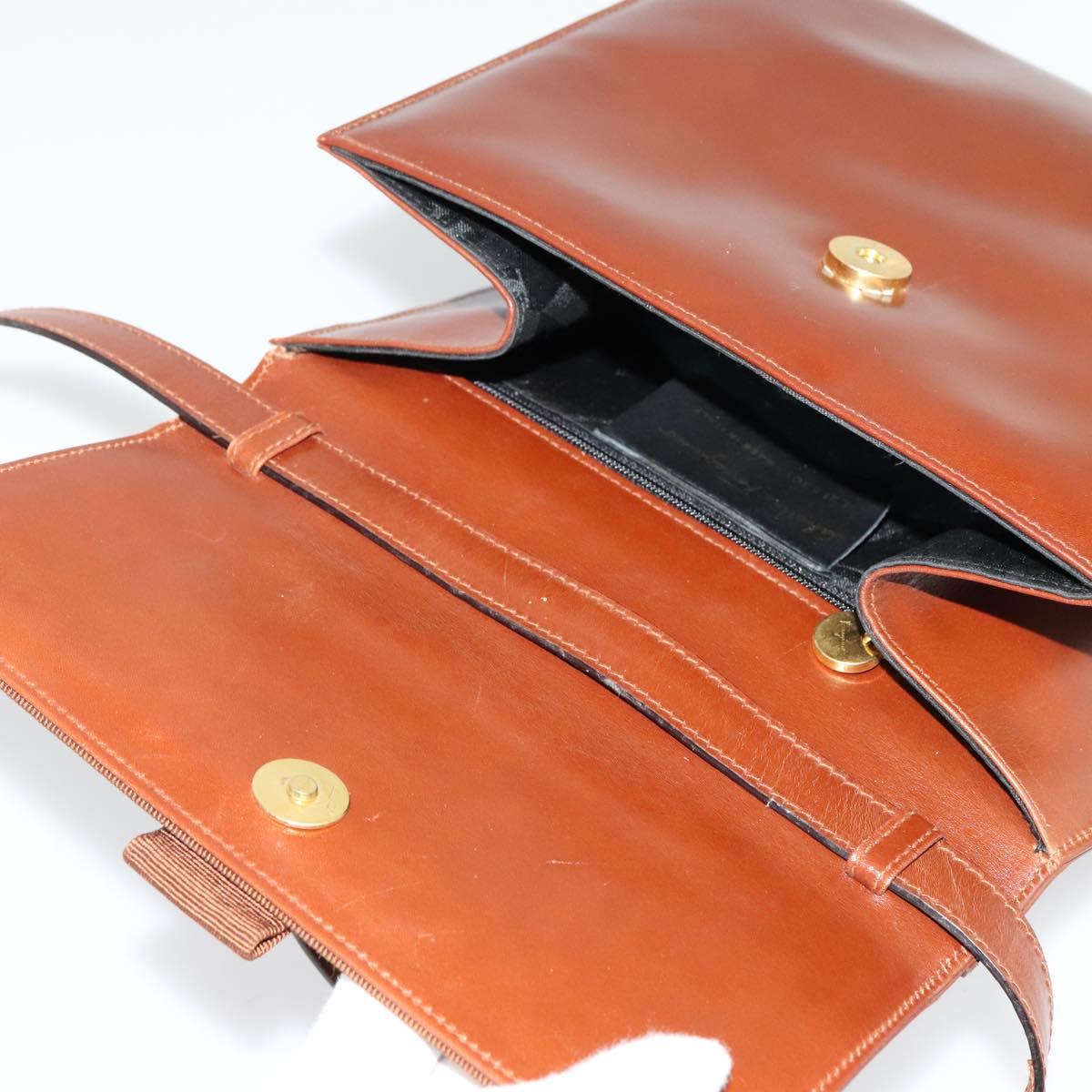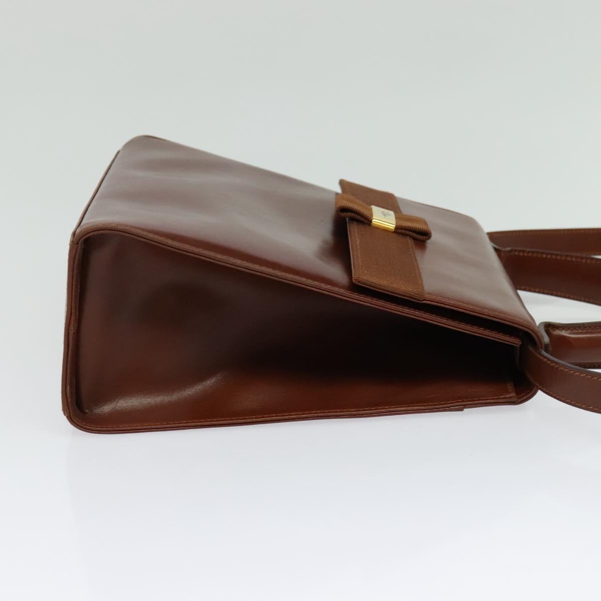 Salvatore Ferragamo Vala Hand Bag Leather 2way Brown Gold Auth bs28714