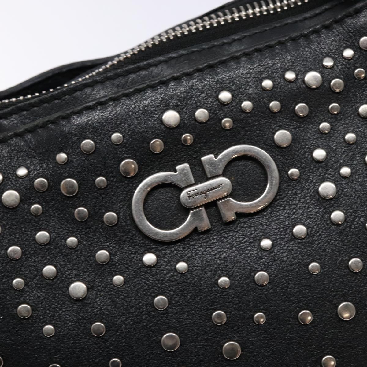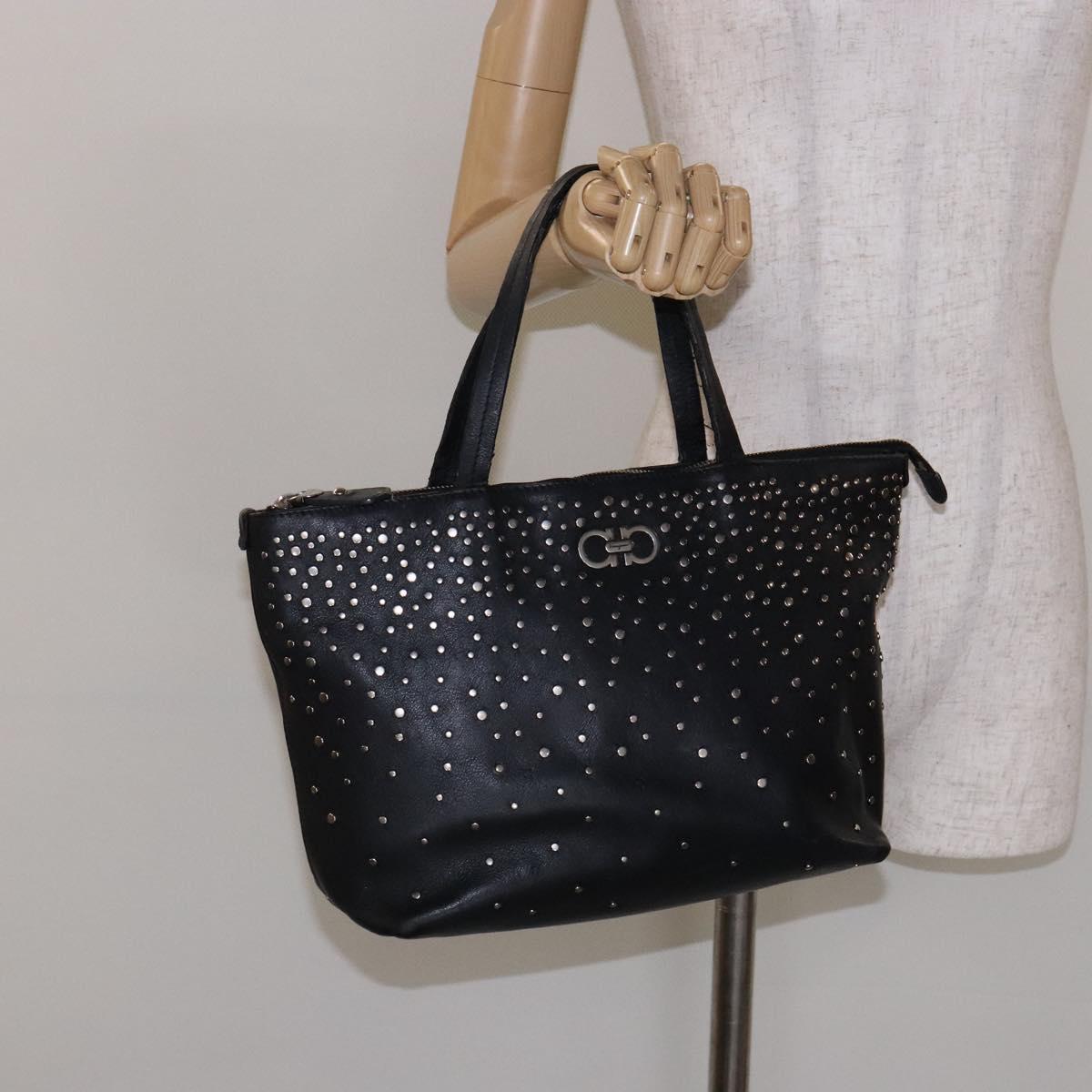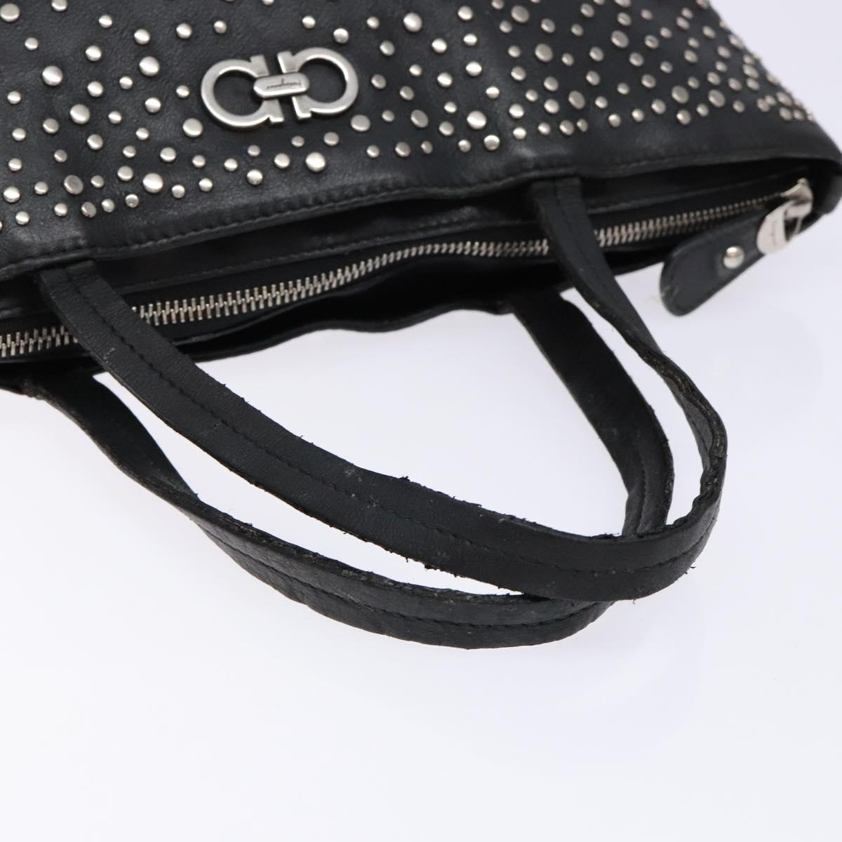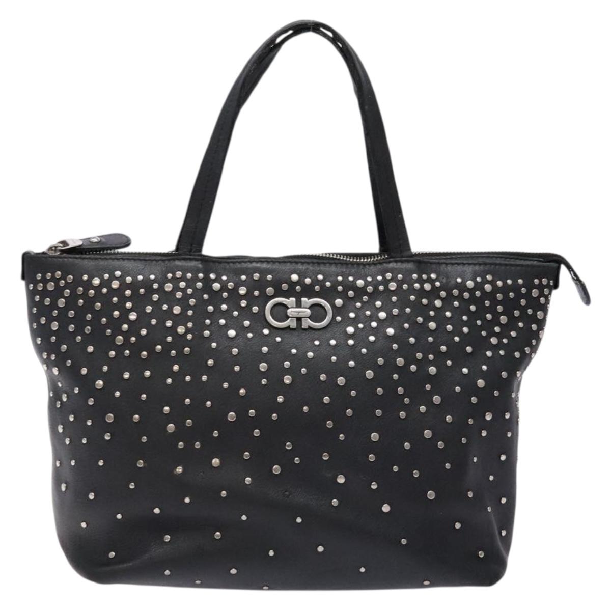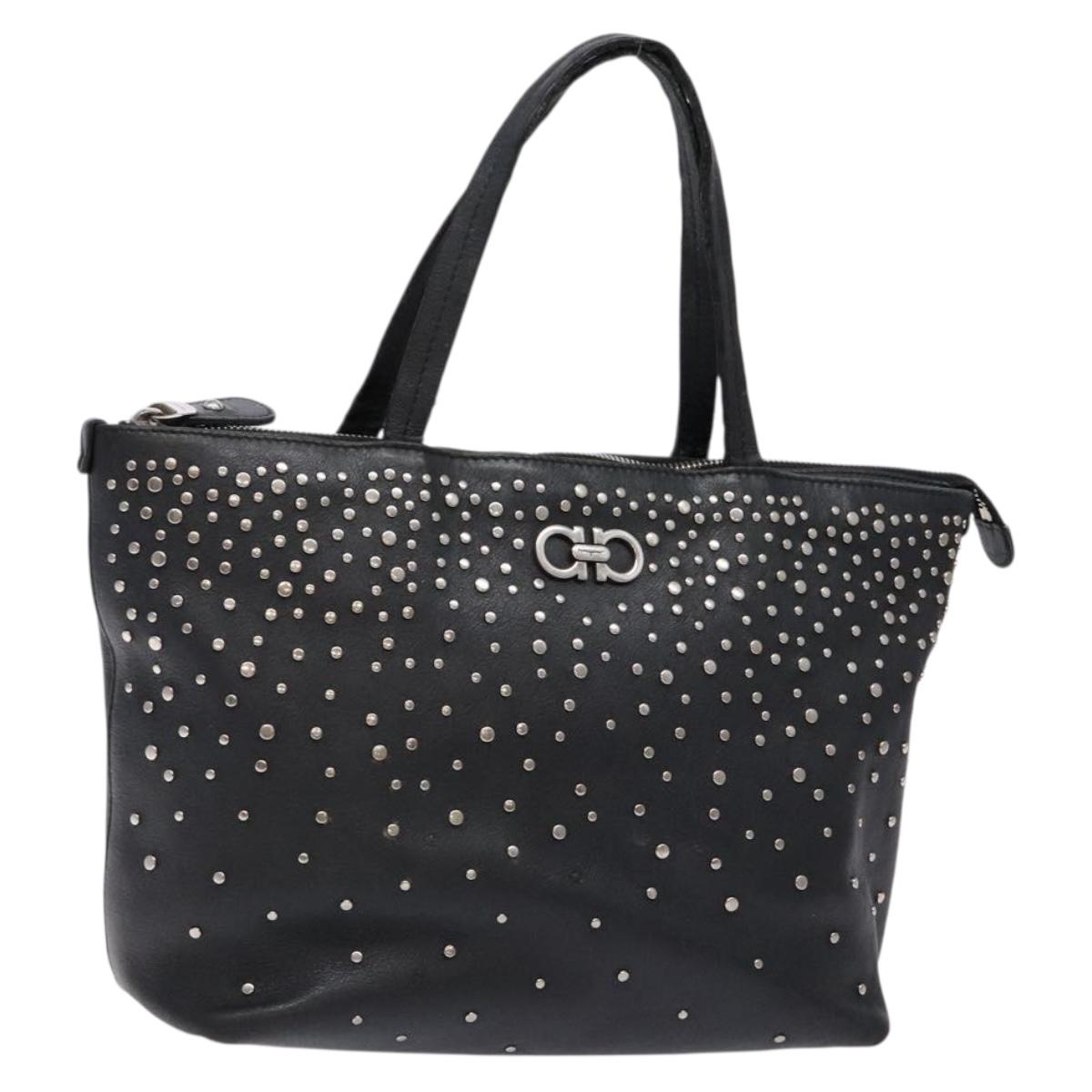 Salvatore Ferragamo Gancini Tote Bag Leather Black Silver Auth bs28720