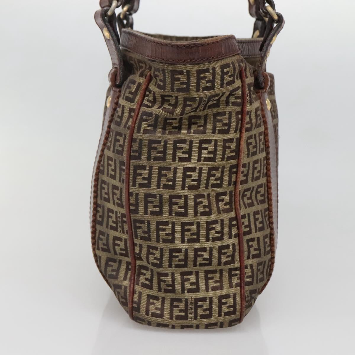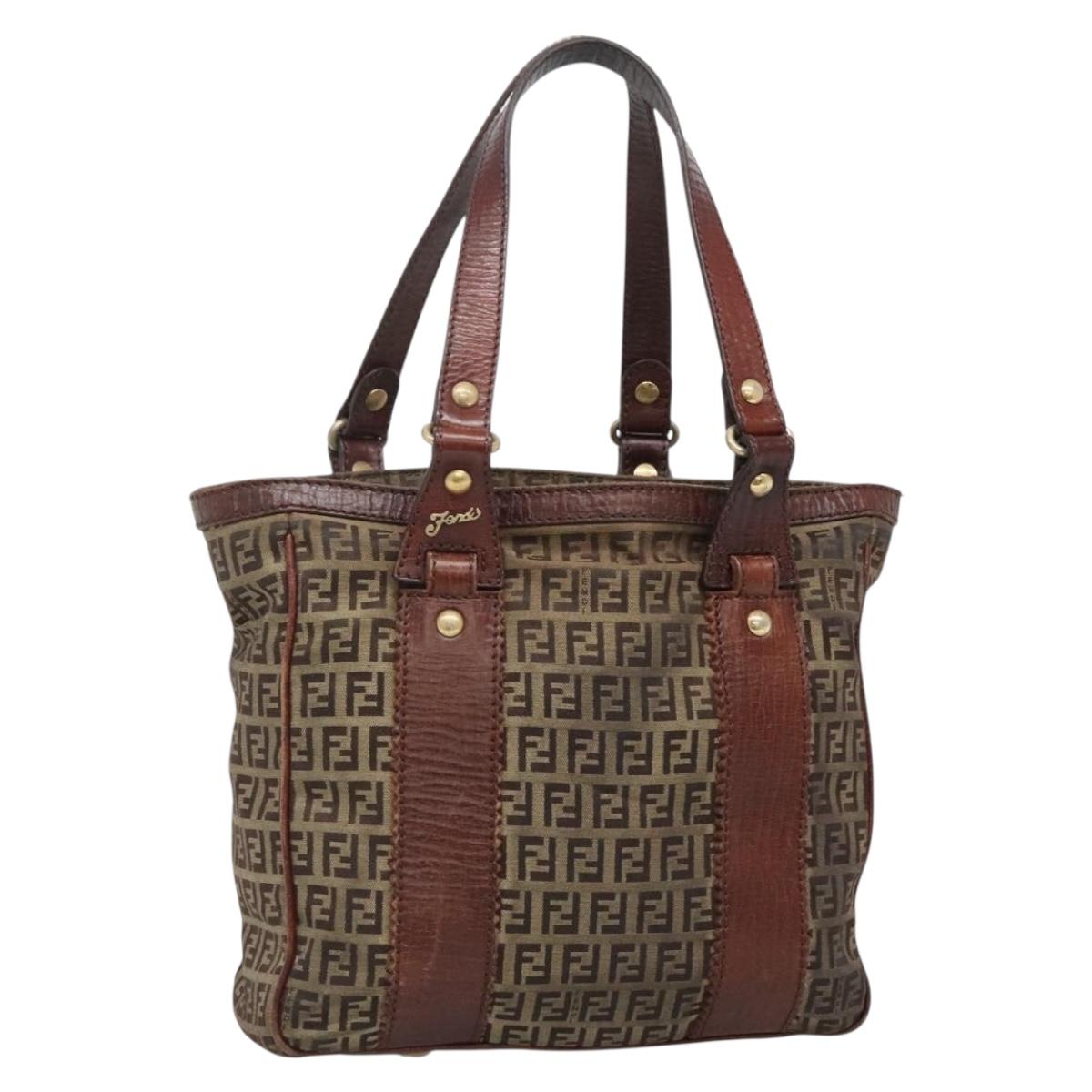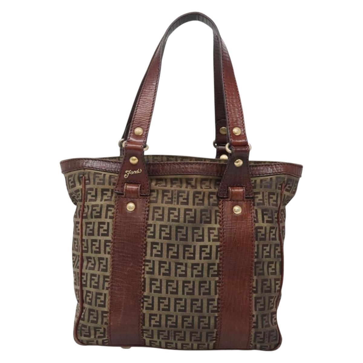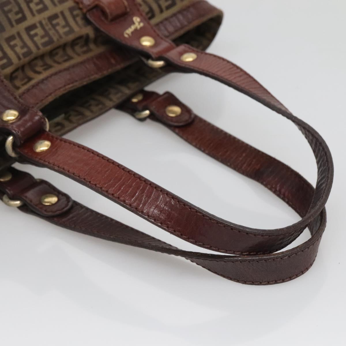 FENDI Zucchino Canvas Tote Bag Brown Gold Auth 139280