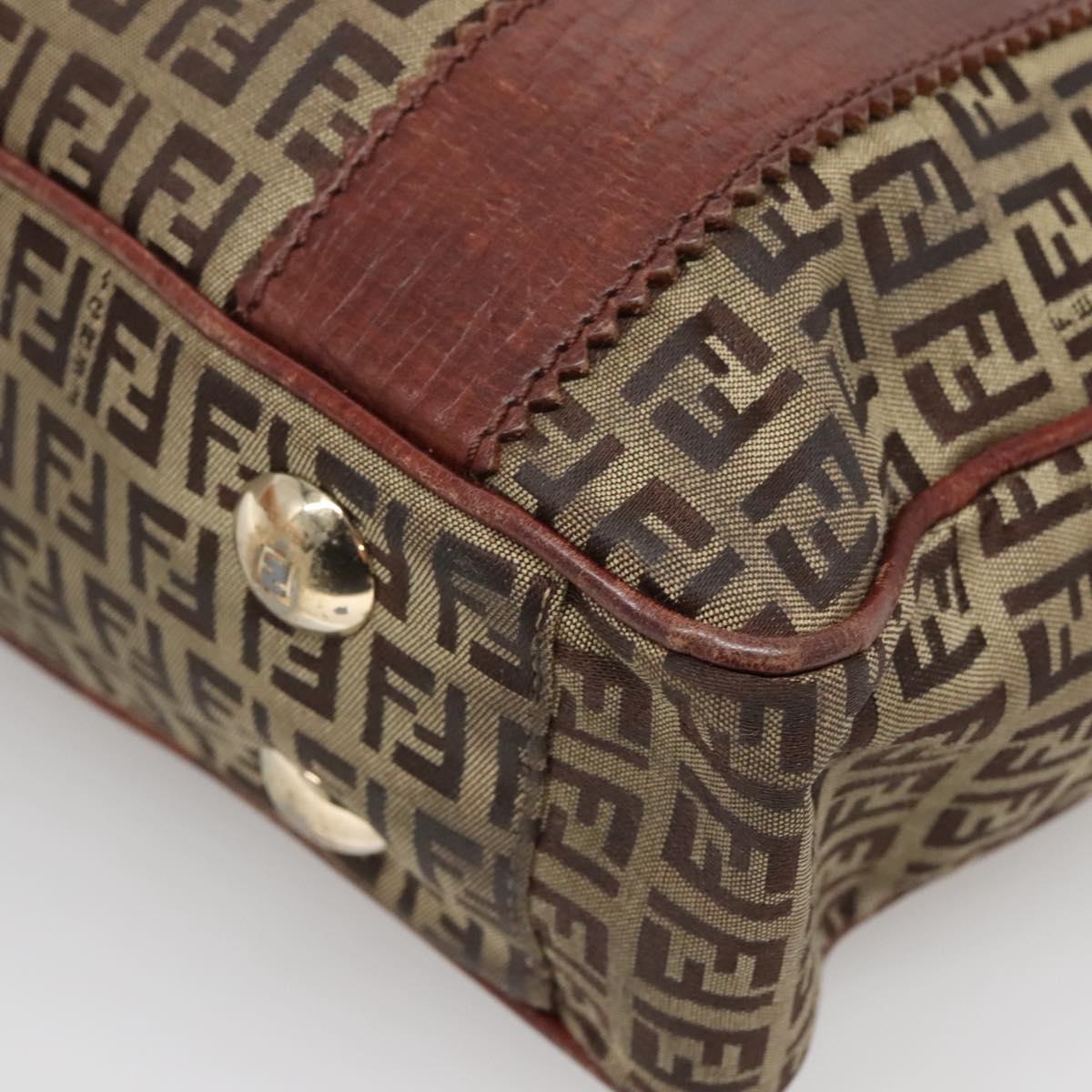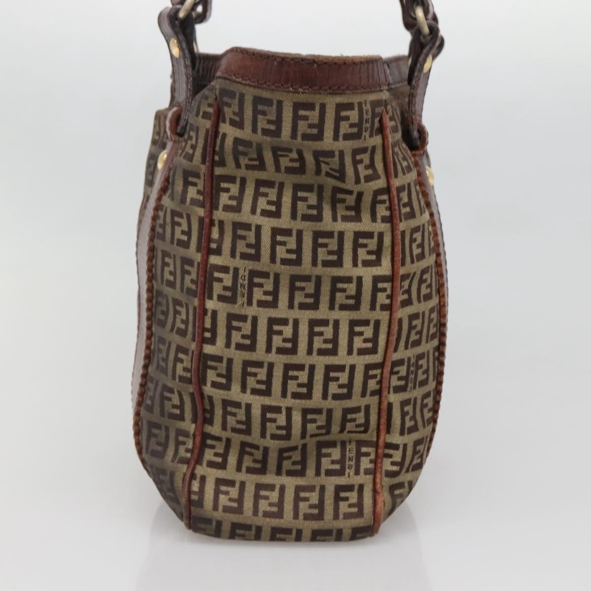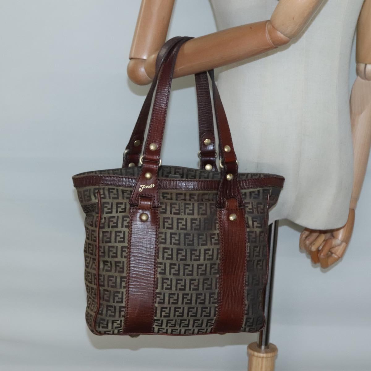 FENDI Zucchino Canvas Tote Bag Brown Gold Auth 139280