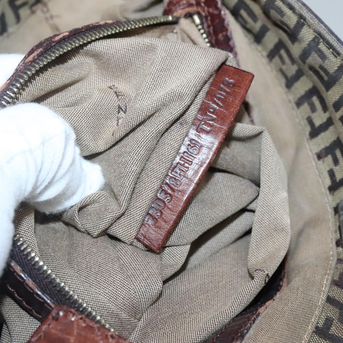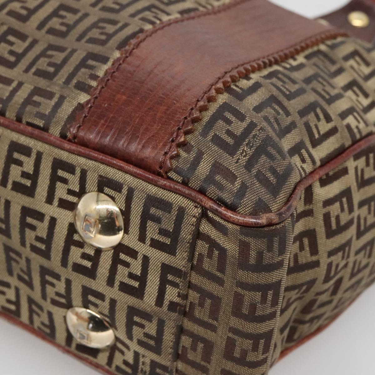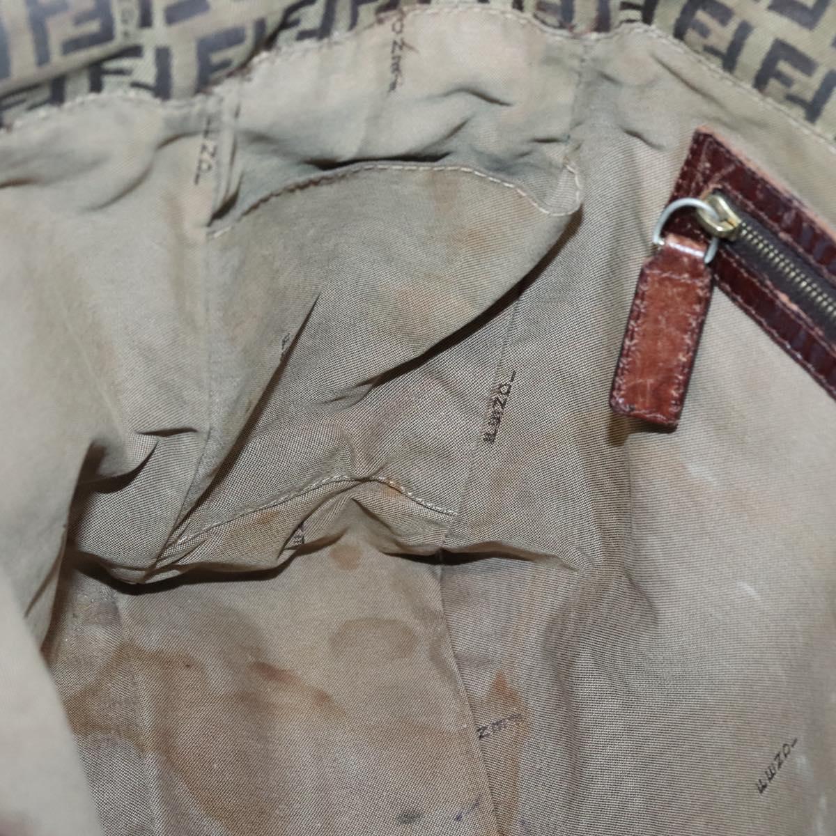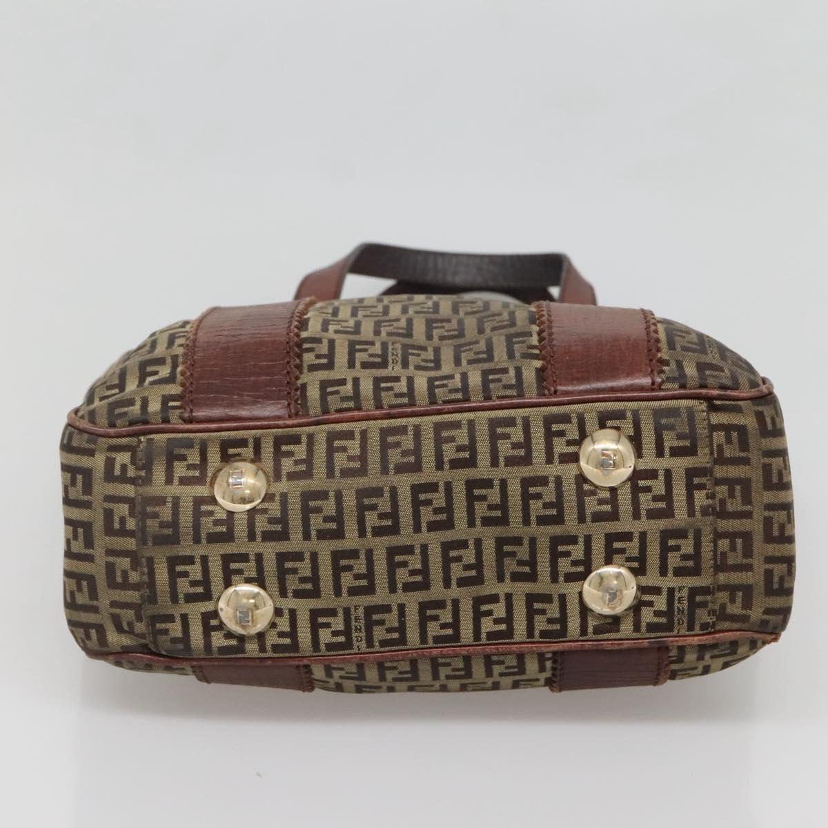 FENDI Zucchino Canvas Tote Bag Brown Gold Auth 139280