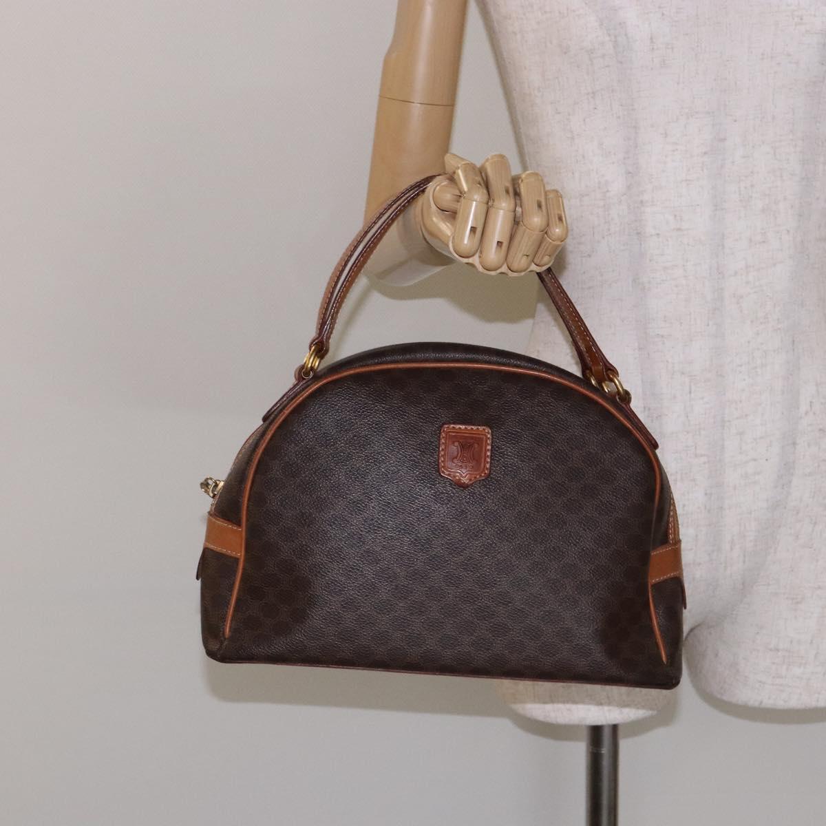 CELINE Macadam Canvas Hand Bag PVC Leather Brown Gold Auth ki5970