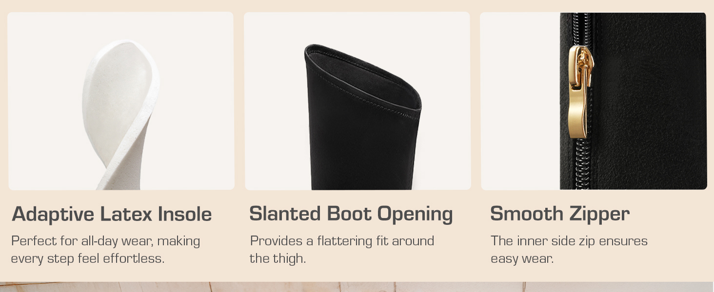 Flattering Fit: Made with soft, stretchy materials, these thigh-high boots comfortably accommodate different calf and thigh sizes. (Refer to the size chart for details.)