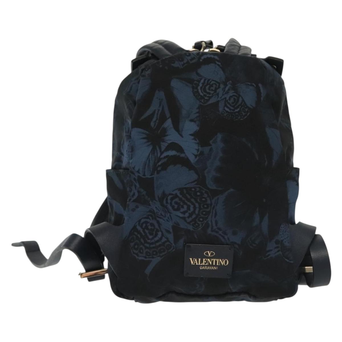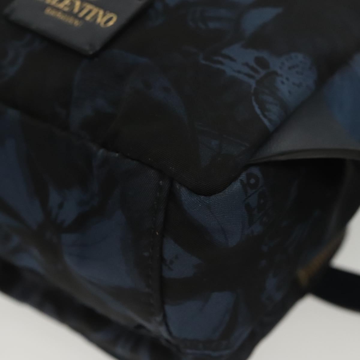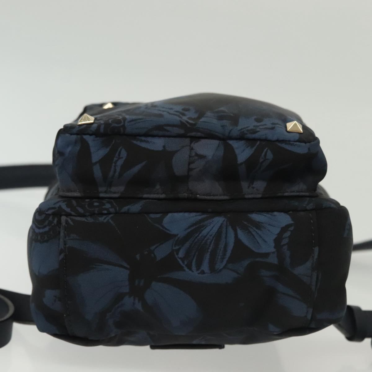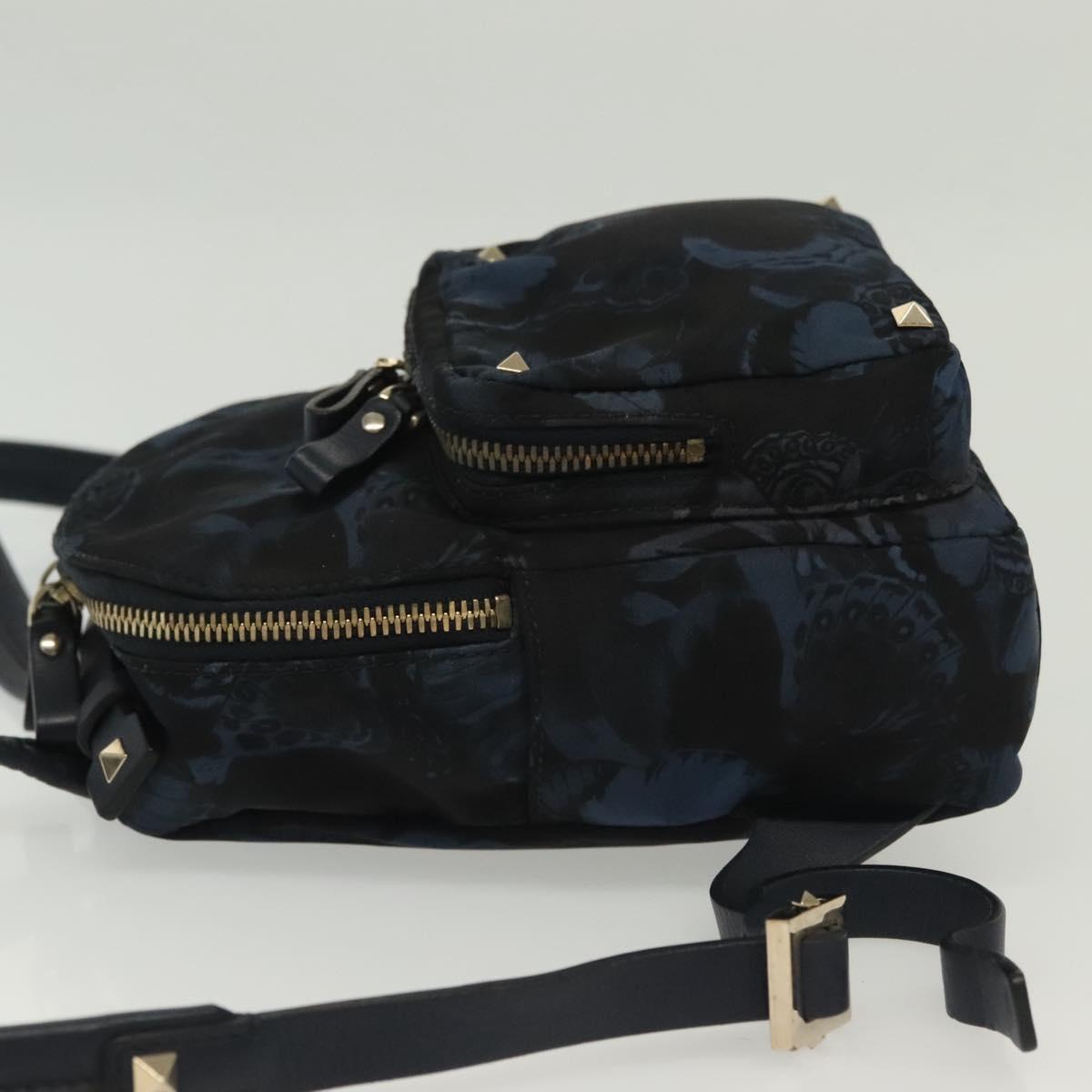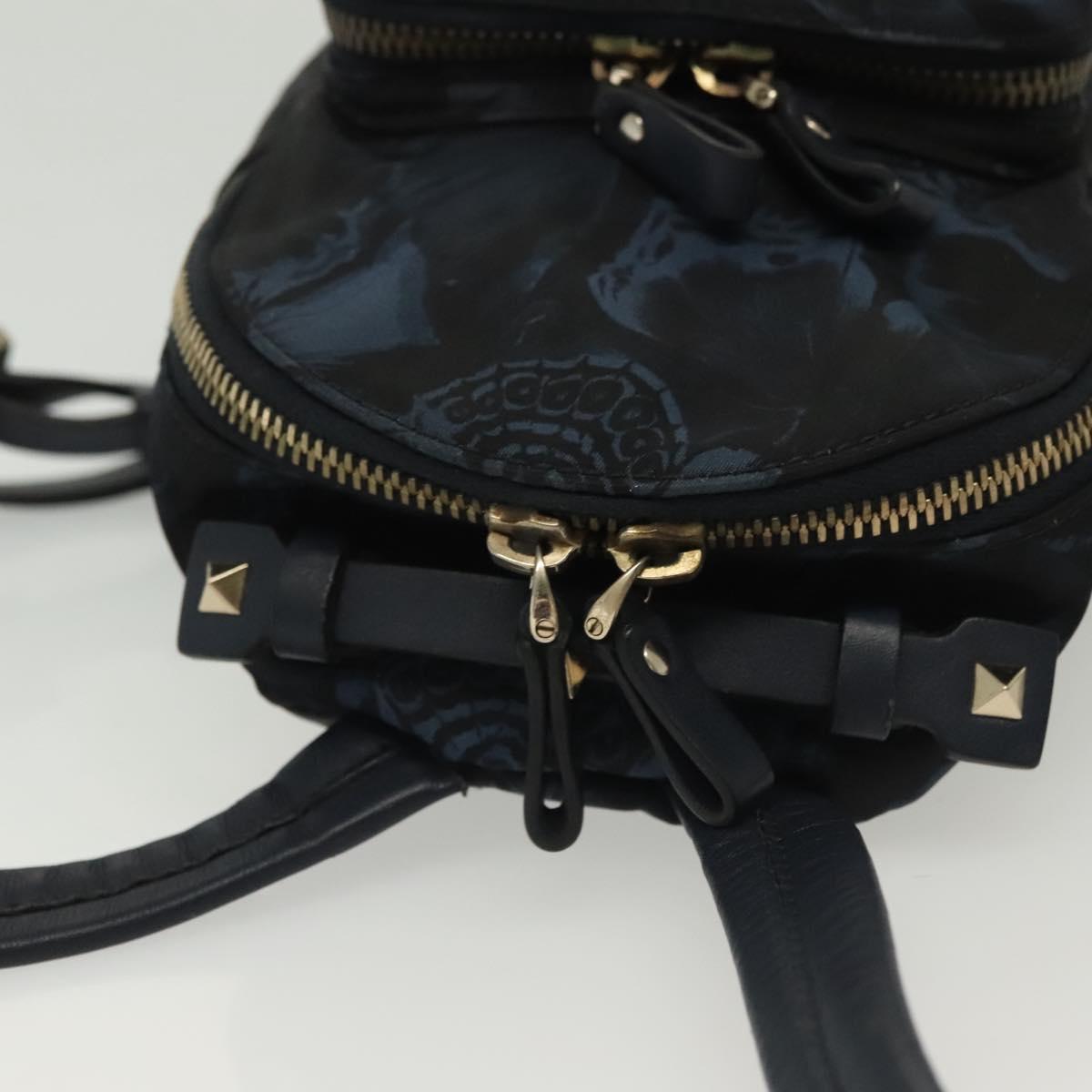 VALENTINO Backpack Nylon Leather Navy Silver Auth bs28757