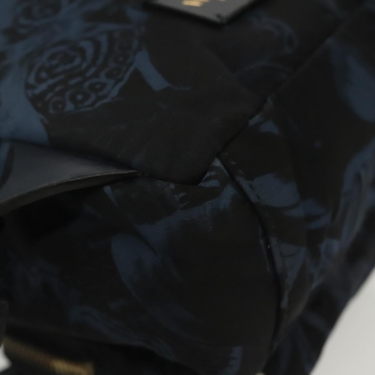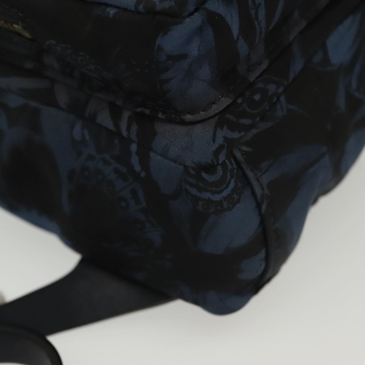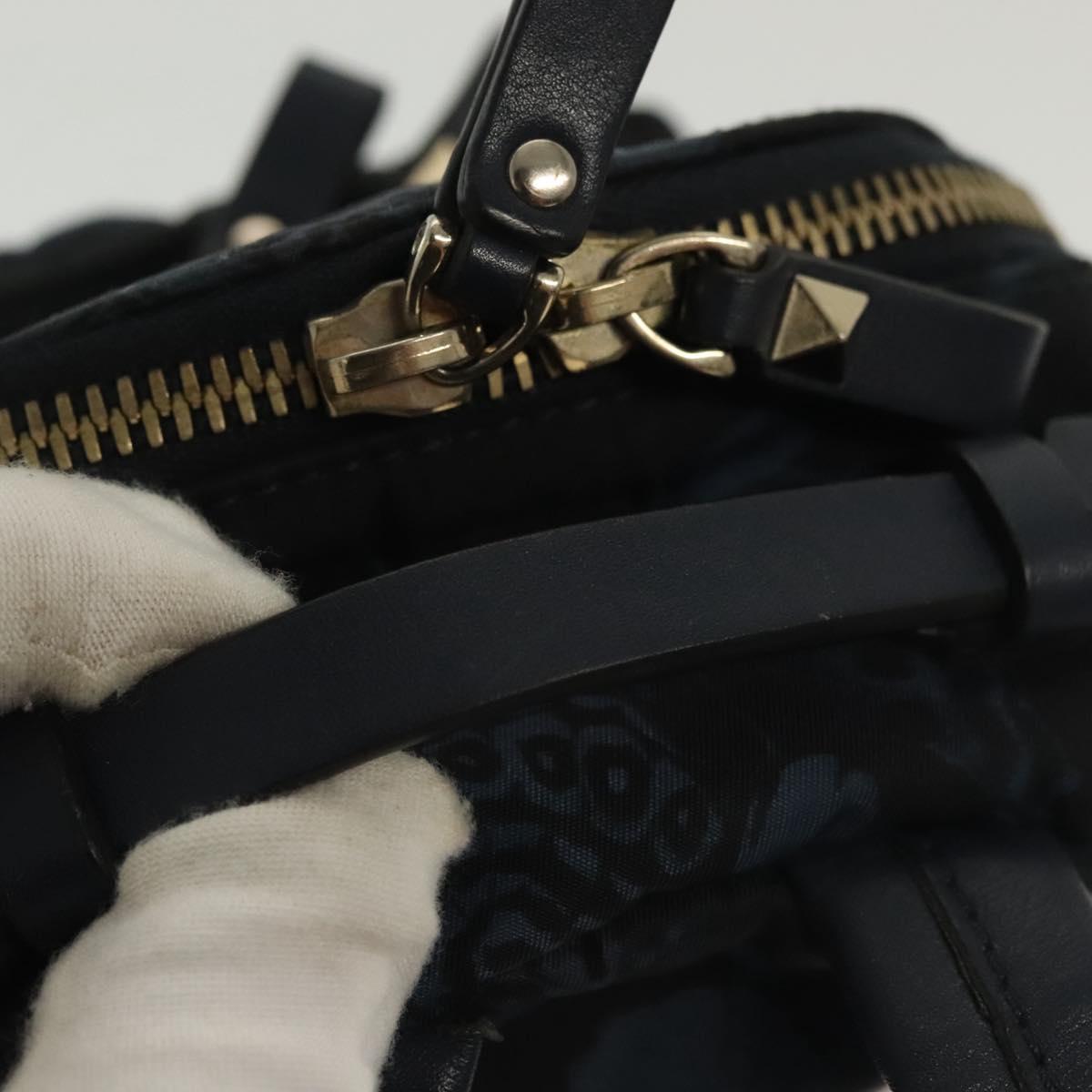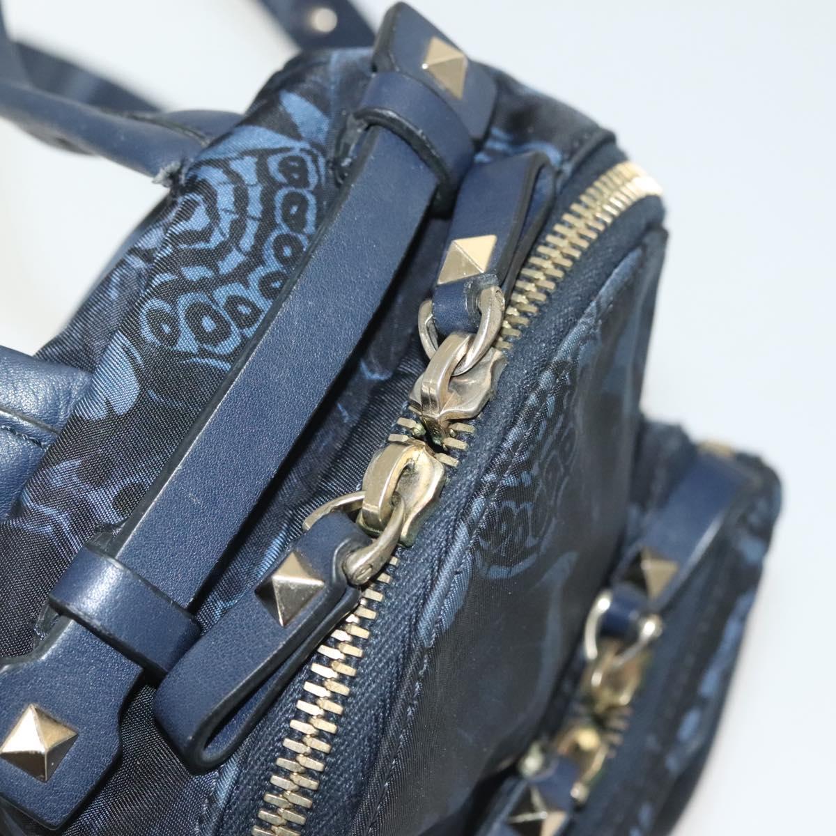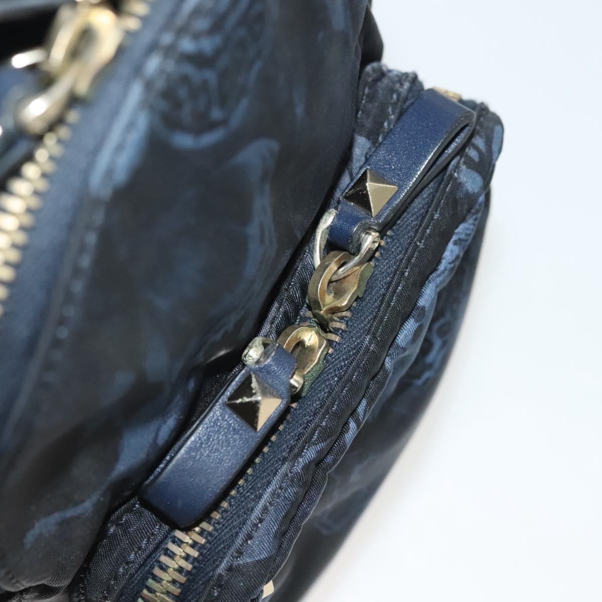 VALENTINO Backpack Nylon Leather Navy Silver Auth bs28757