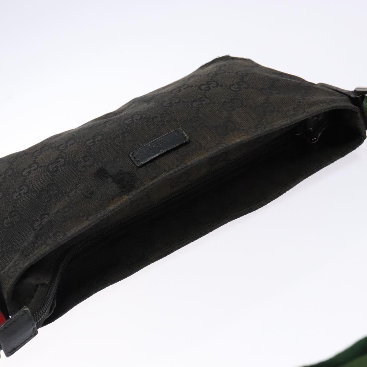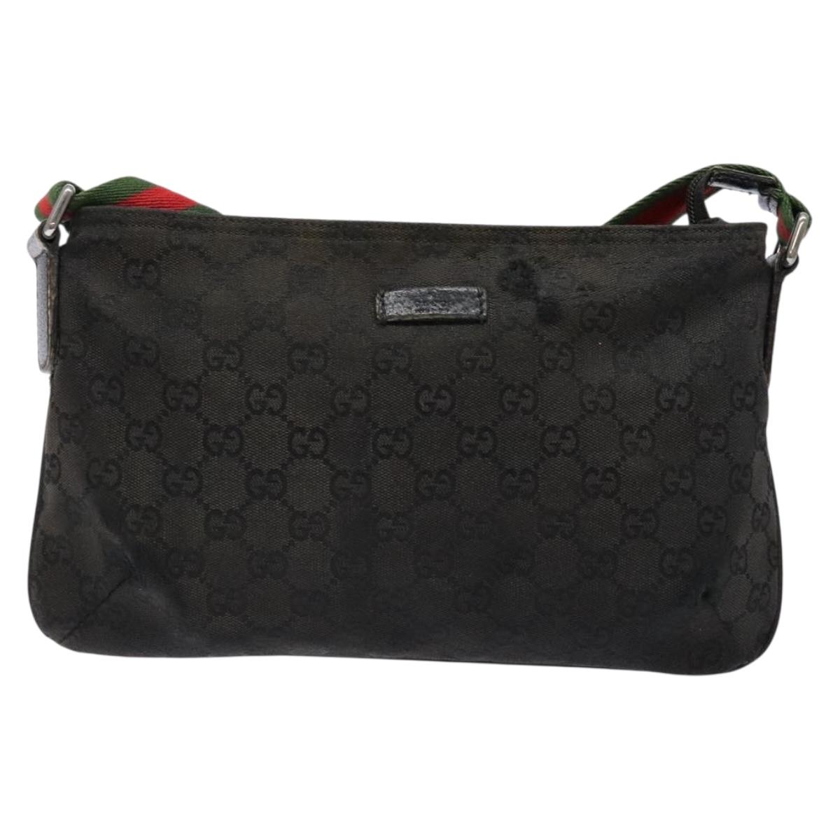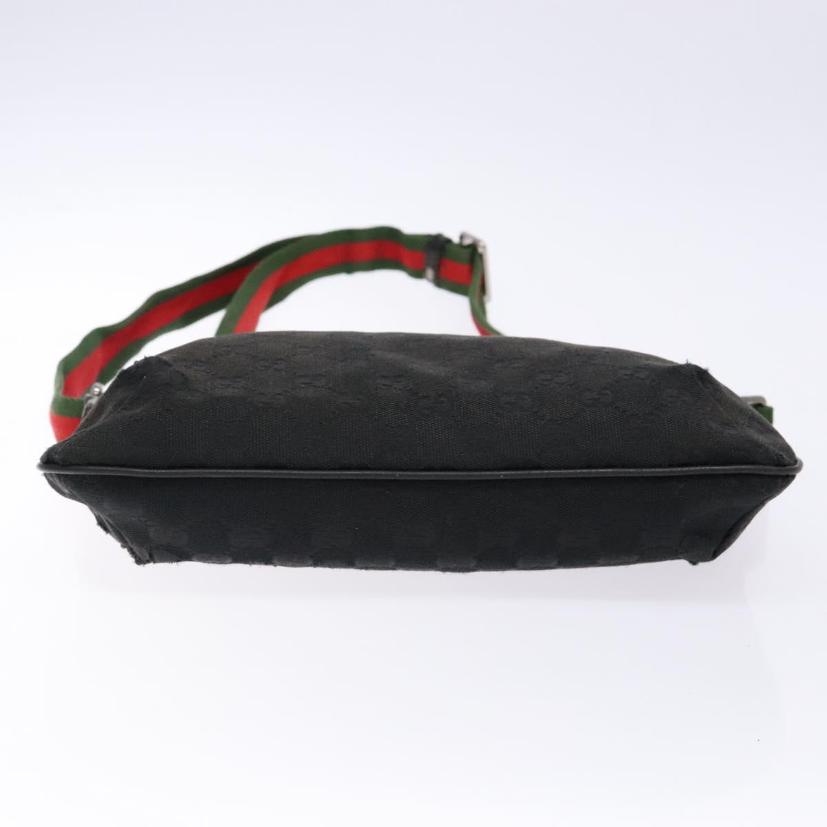 GUCCI GG Canvas Web Sherry Line Shoulder Bag Black Silver 189749 Auth bs28637