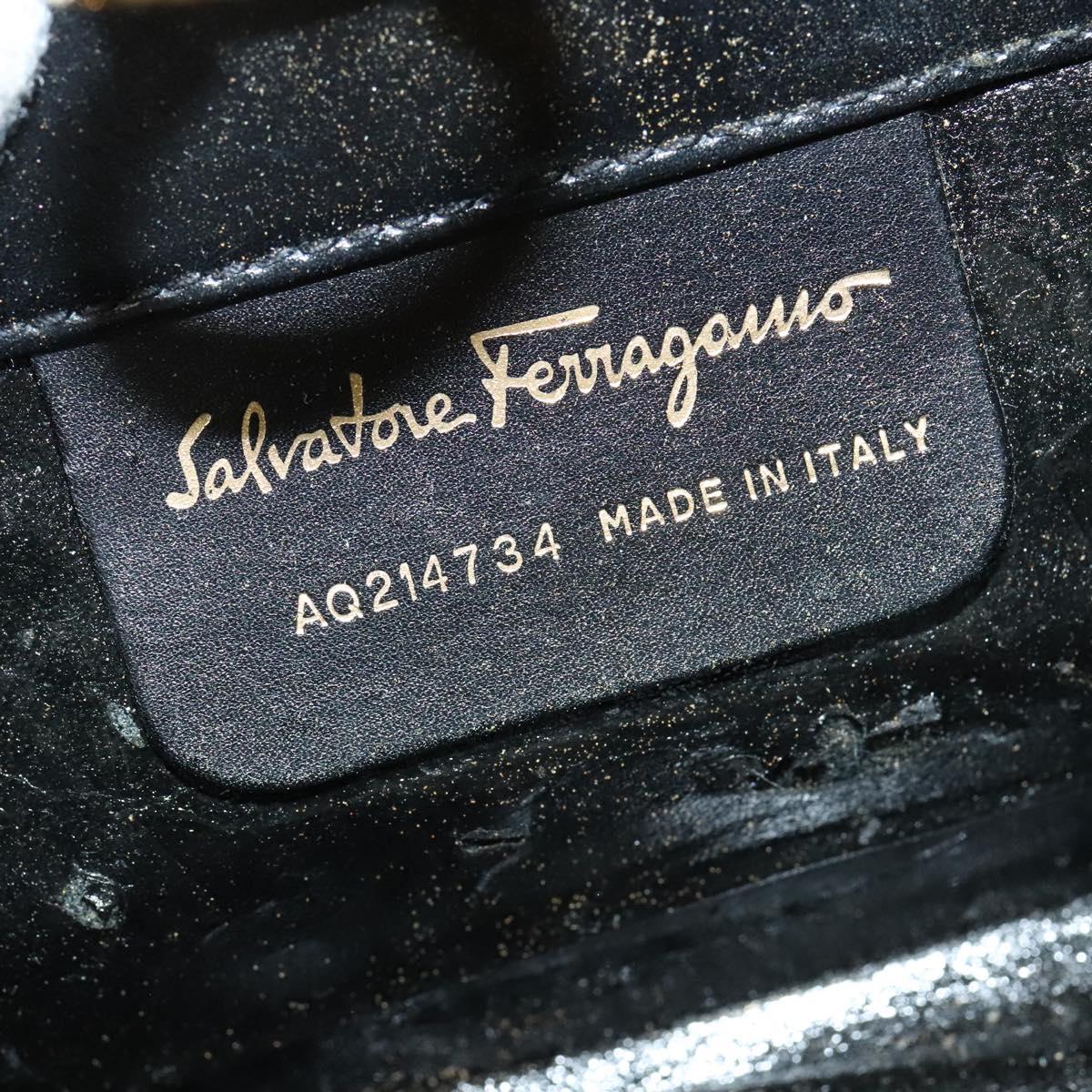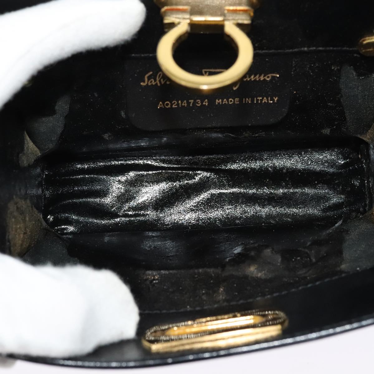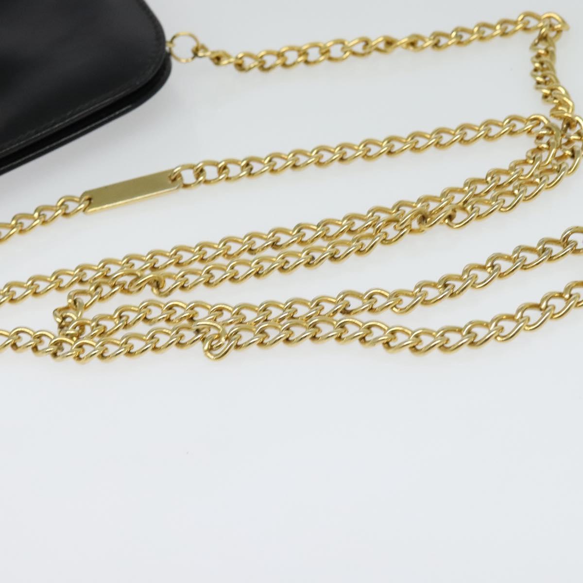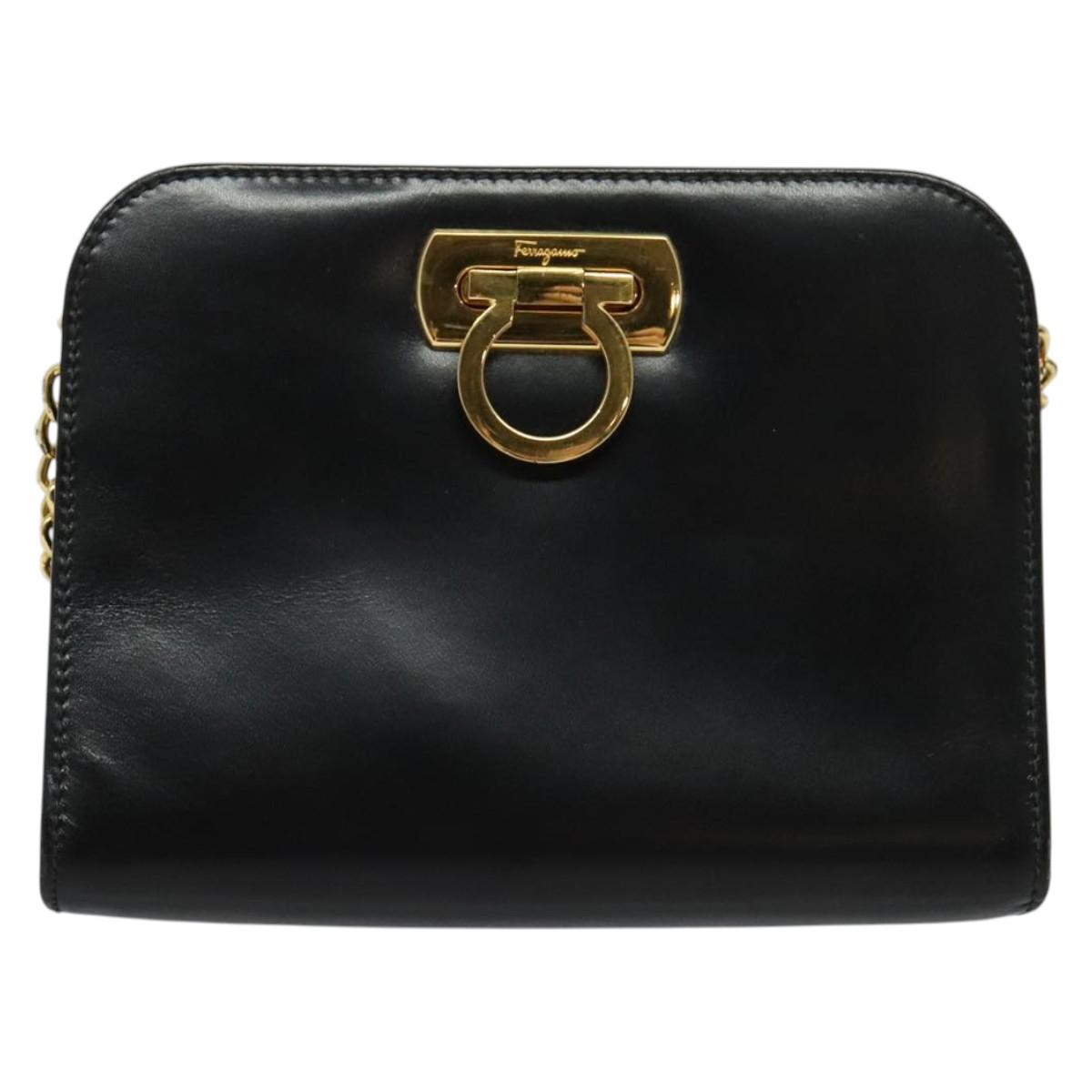 Salvatore Ferragamo Gancini Chain Shoulder Bag Leather Black Gold Auth hk2925