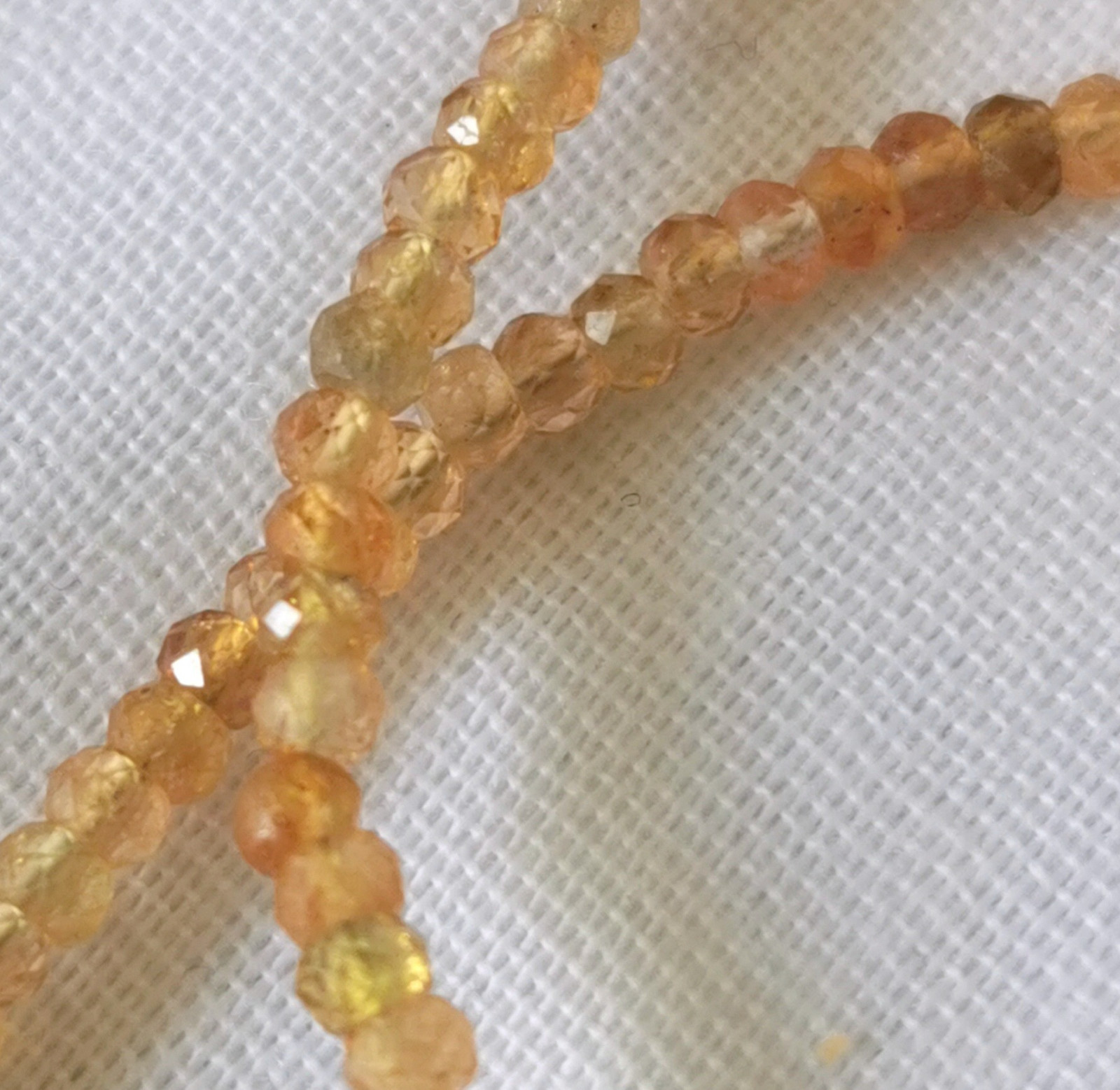 wunderbare Kette aus facettierten Citrin Rondellen von ca. 3 mm, die Kette ist 50 cm lang und ca. 8,1 Gramm schwer, die Citrine wiegen ca. 36 Karat. Aufgezogen ist sie auf nylonummanteltem Schmuckdraht mit einem Karabinerverschluß aus 925er Silber. Die Steine stammen aus Indien und sind nicht behandelt. ebay geht auf meine Kosten.