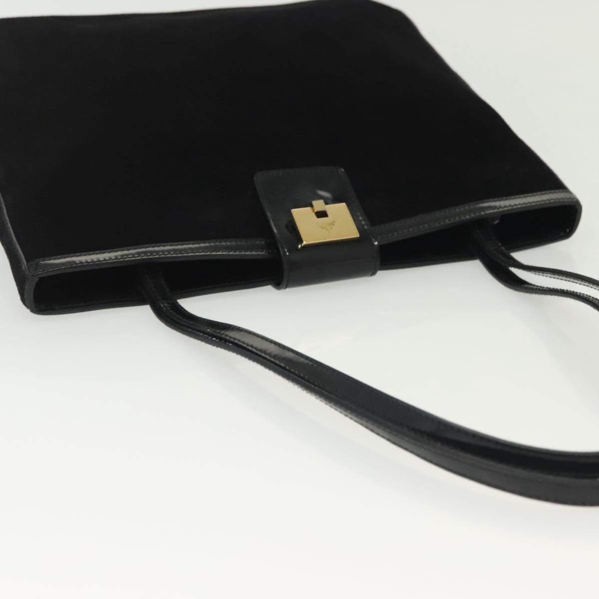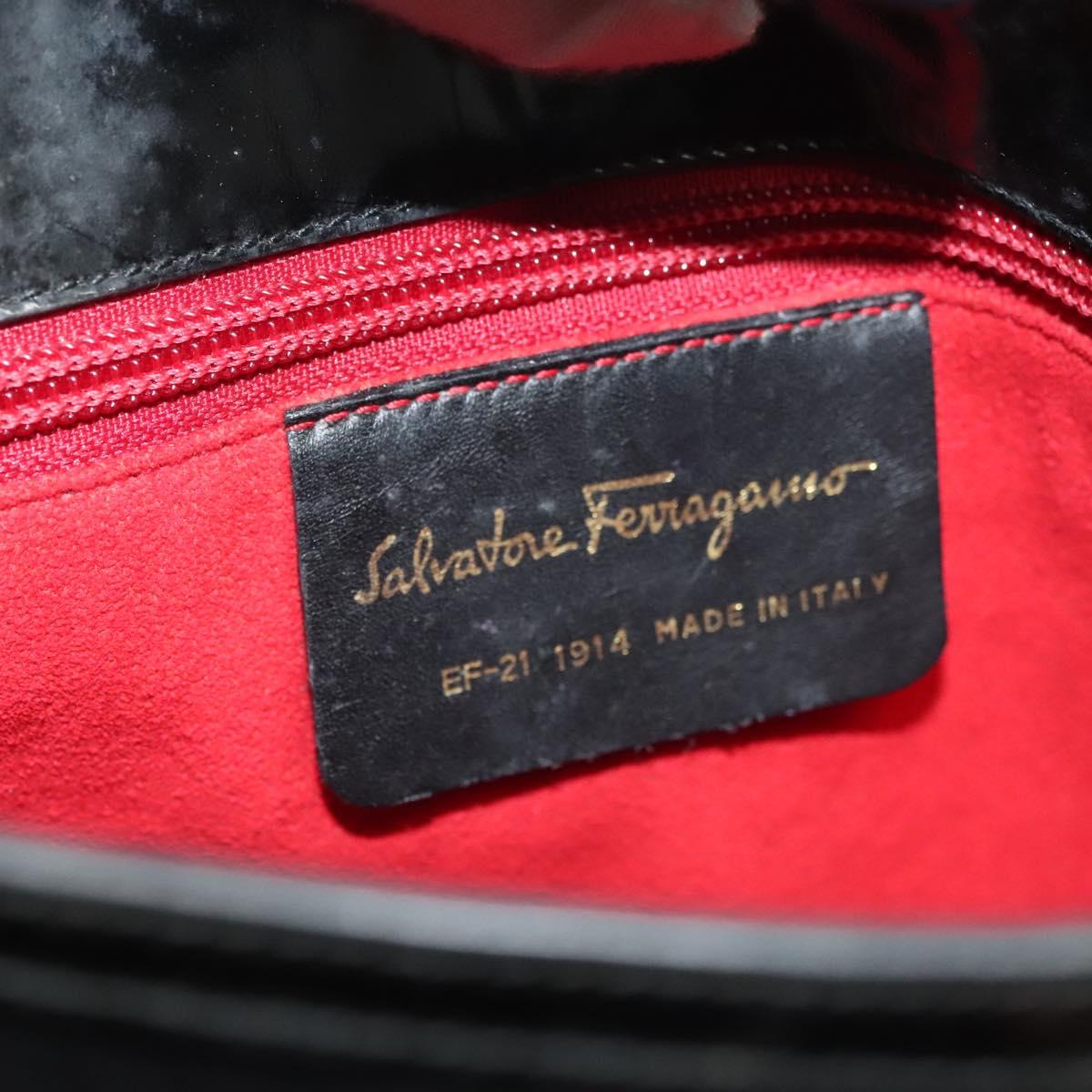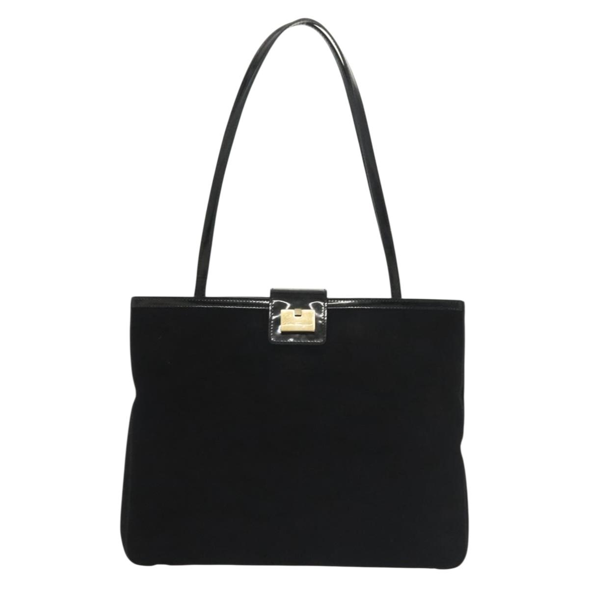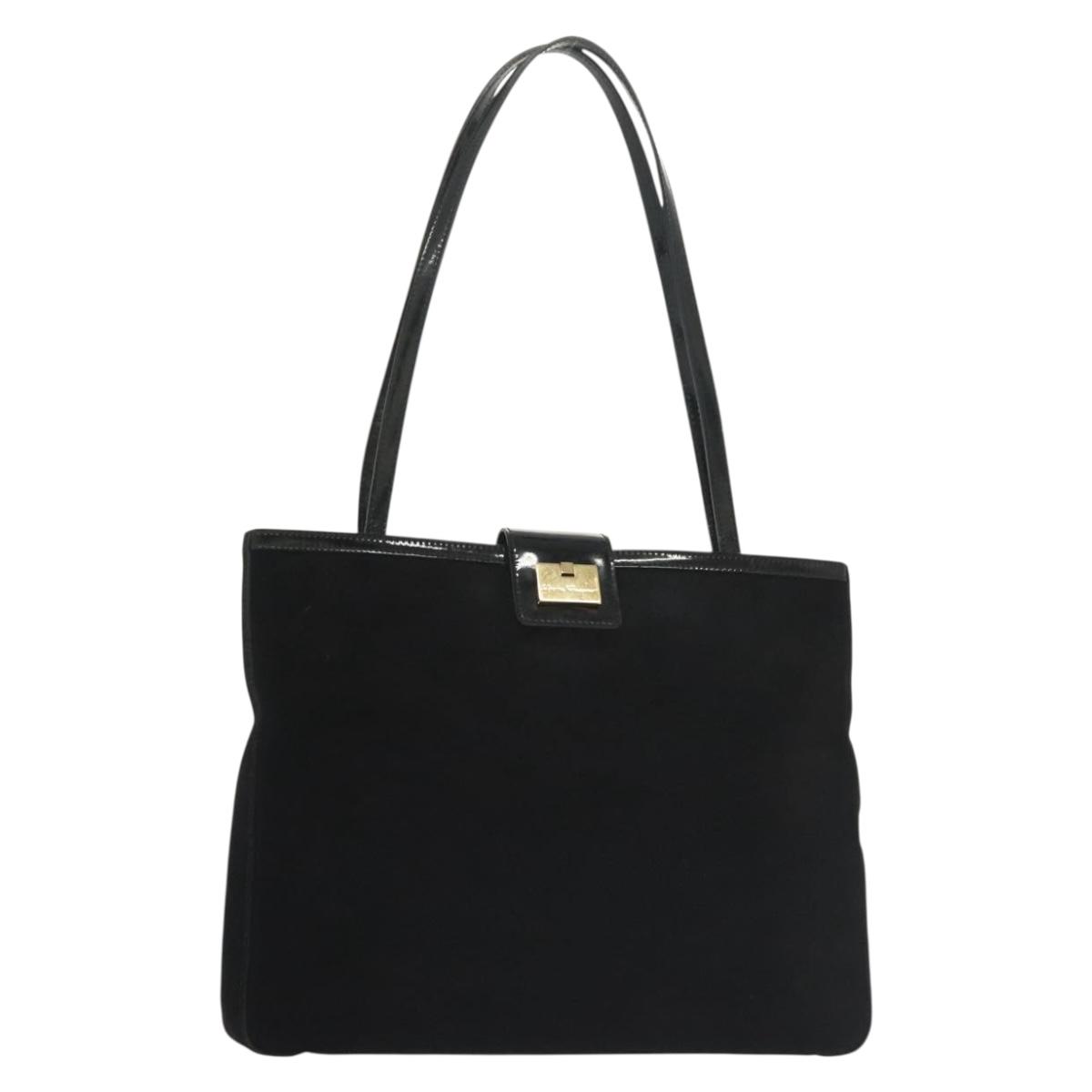 Salvatore Ferragamo Shoulder Bag Suede Black Gold Auth 139577