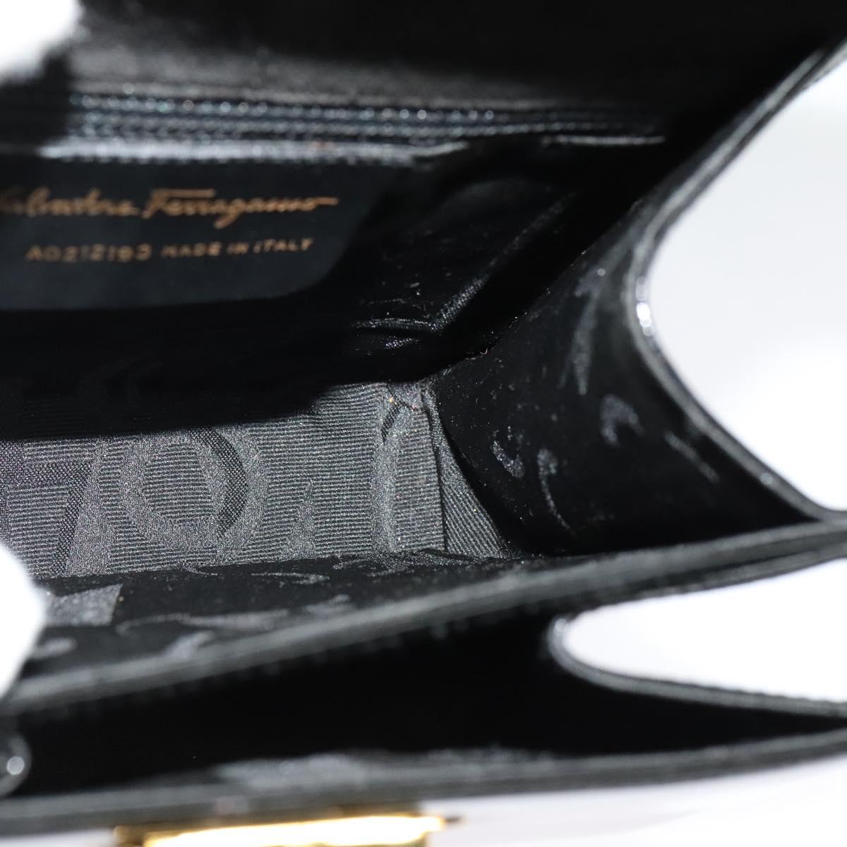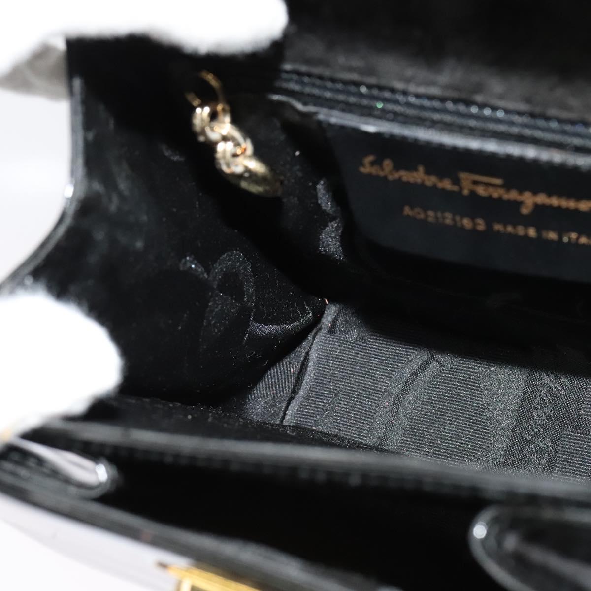 Salvatore Ferragamo Gancini Hand Bag Enamel 2way Black Gold Auth 138879
