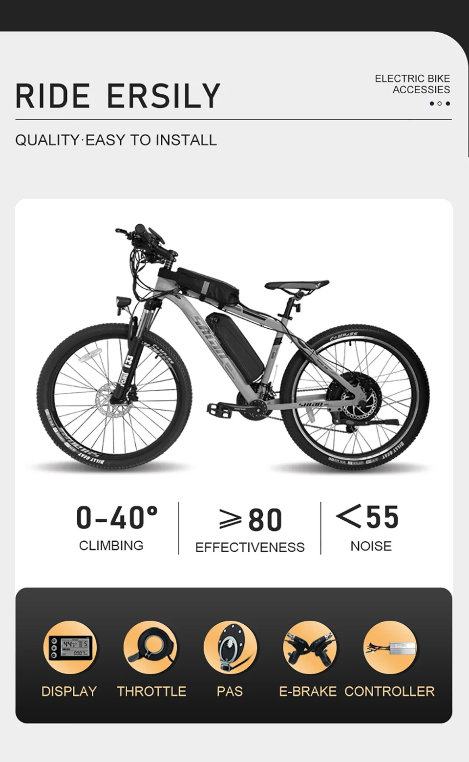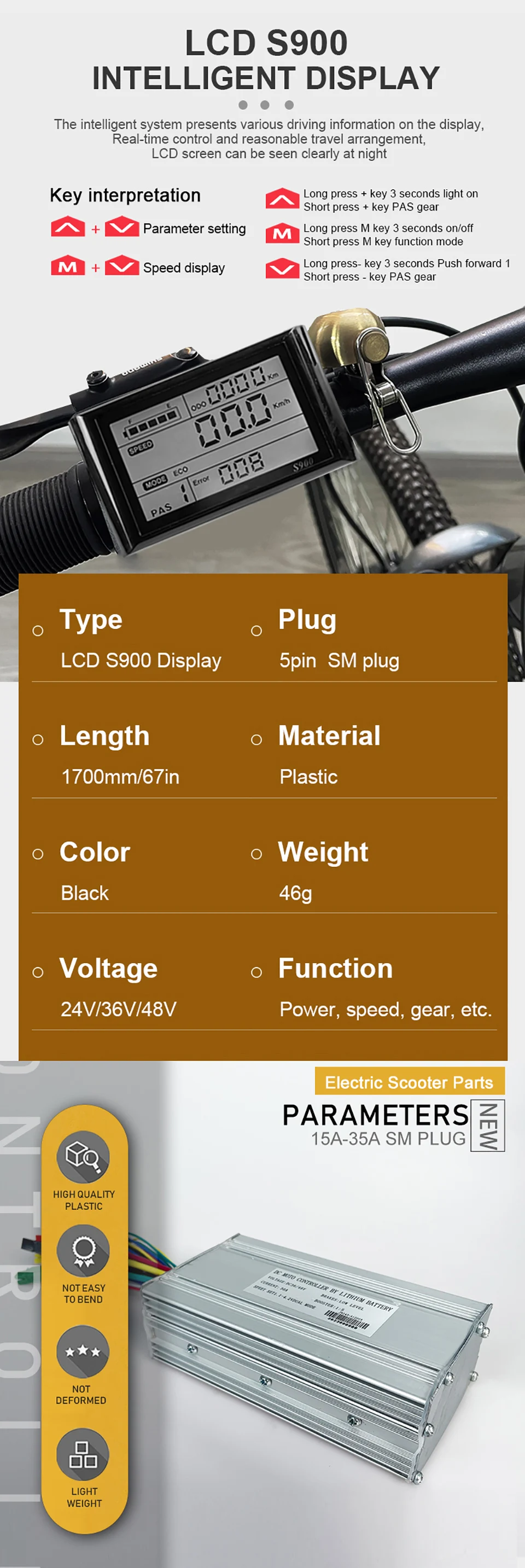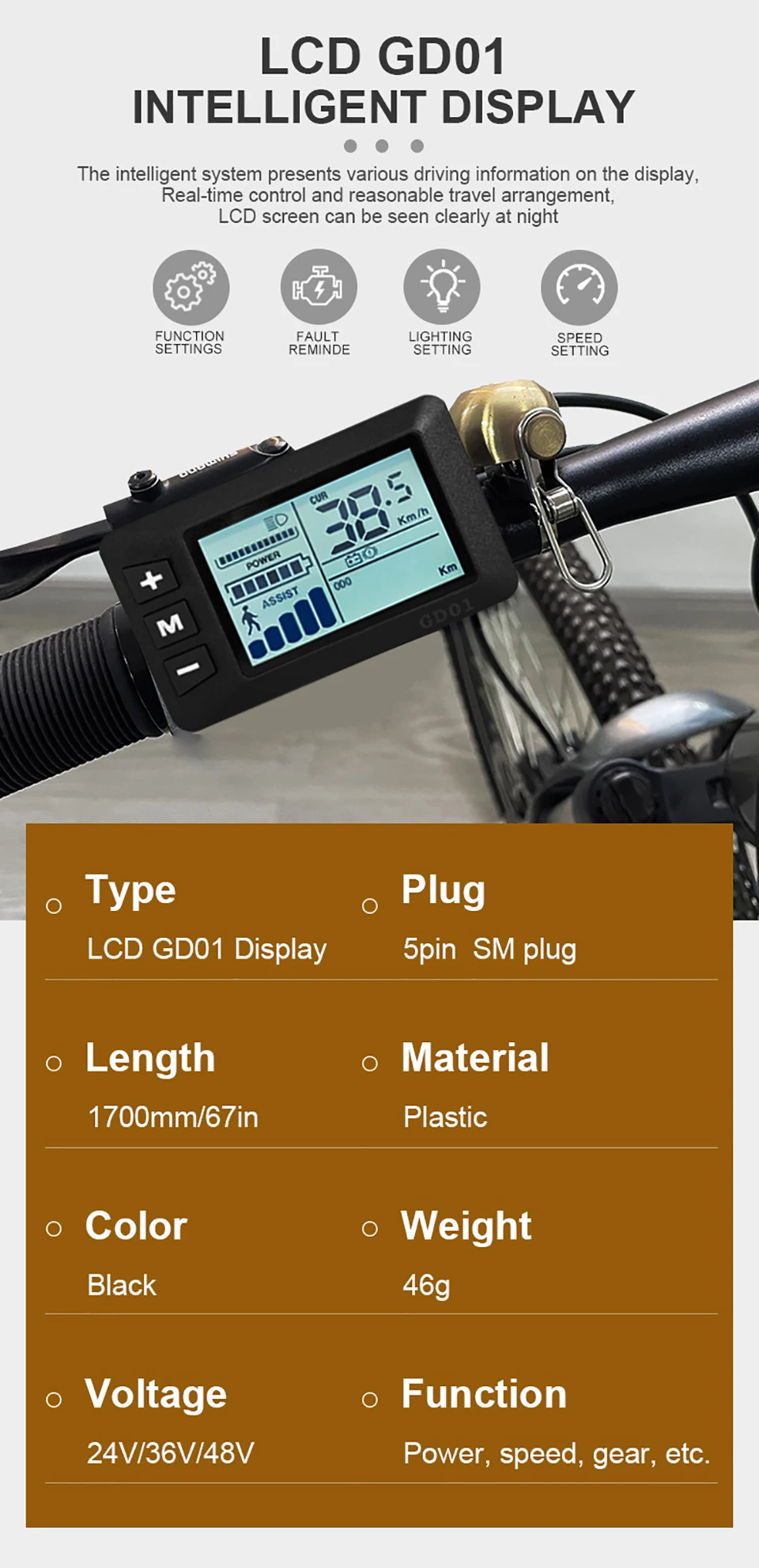 1. The controller and display intelligently identify the voltage, compatible with 36V/48 lithium battery((By setting the "P03" parameter)