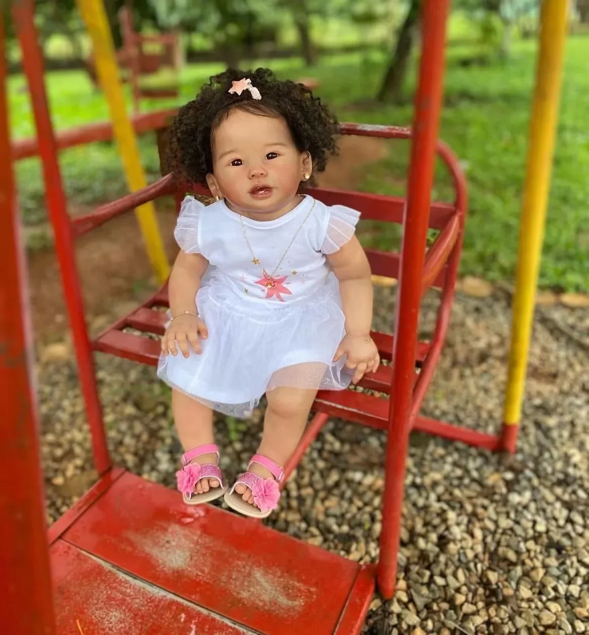 Note: It's not weighted. The arms and legs is hollowed, if you want to add weight on her, pls contact us before place orders!