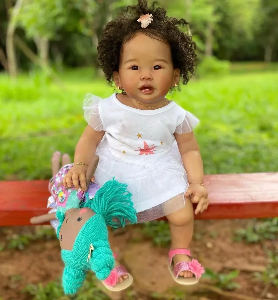 1x finished doll + 1x random clothes (The clothes is not the same as pictures)The head, 1/2 body, full arms and 1/2 legs are all made of vinyl material, non-toxic; The 1/2 body and 1/2 legs are made by soft cloth, it's filled with cotton.