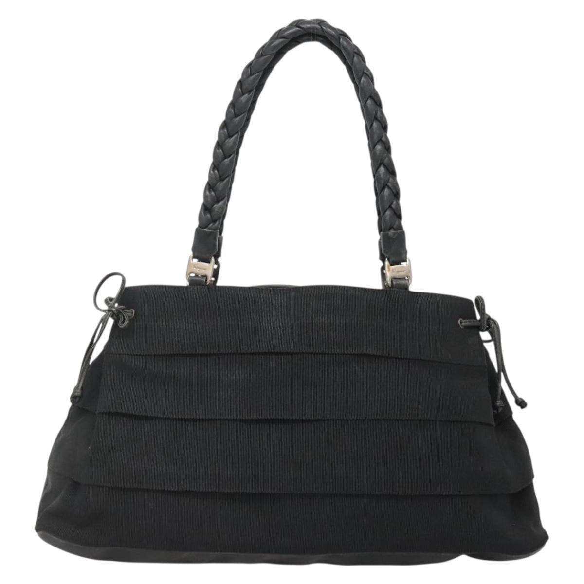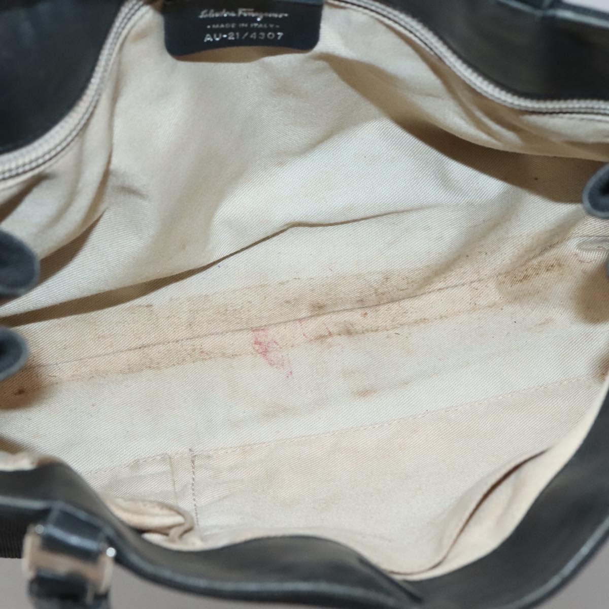 Salvatore Ferragamo Vala Tote Bag Canvas Black Gold Auth bs28915