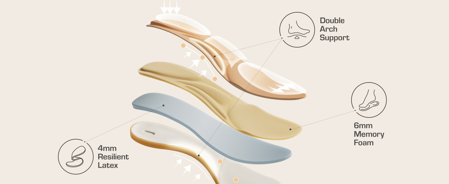 Supportive Insole: 3-in-1 design offers cushioning, arch support, and shock absorption to reduce fatigue.