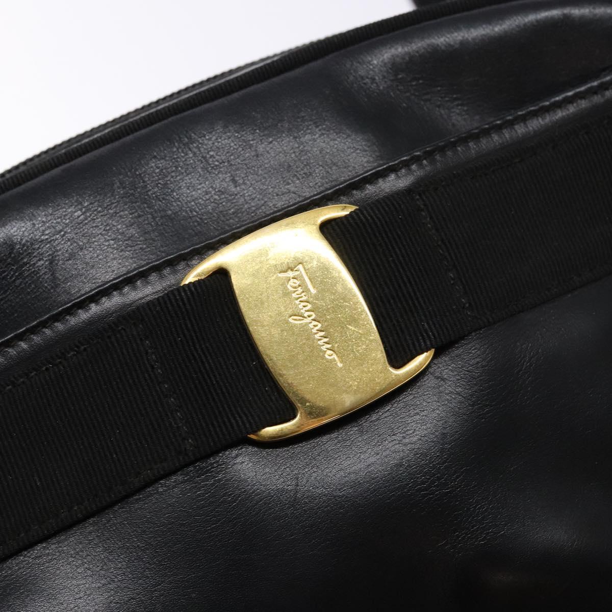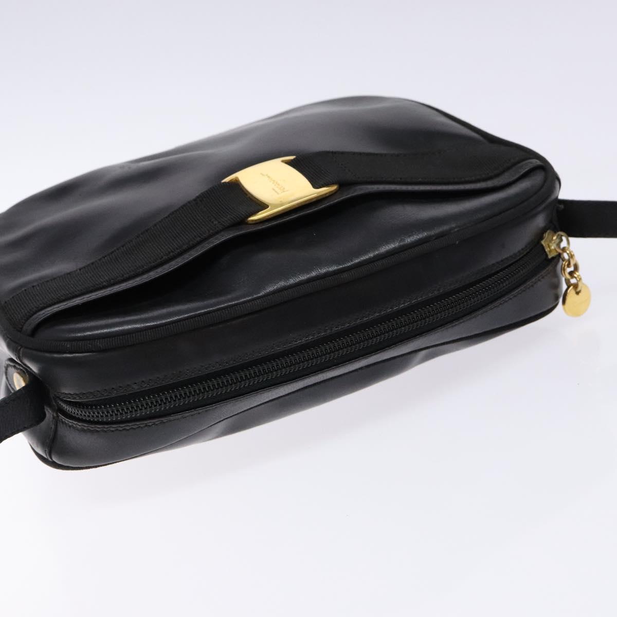 Salvatore Ferragamo Vala Shoulder Bag Leather Black Gold Auth BA5416