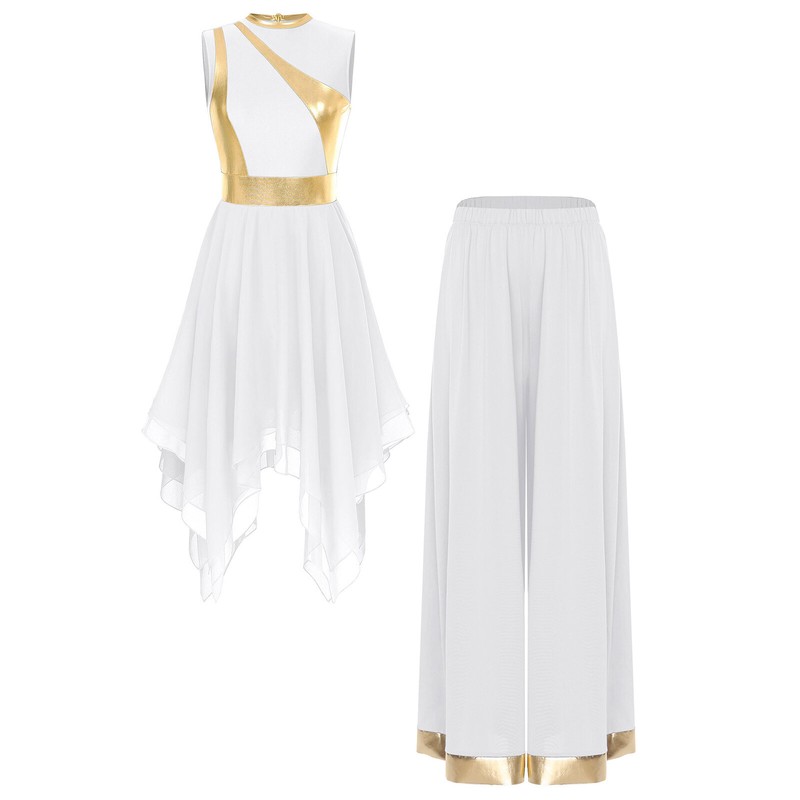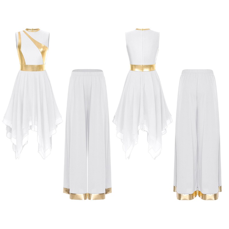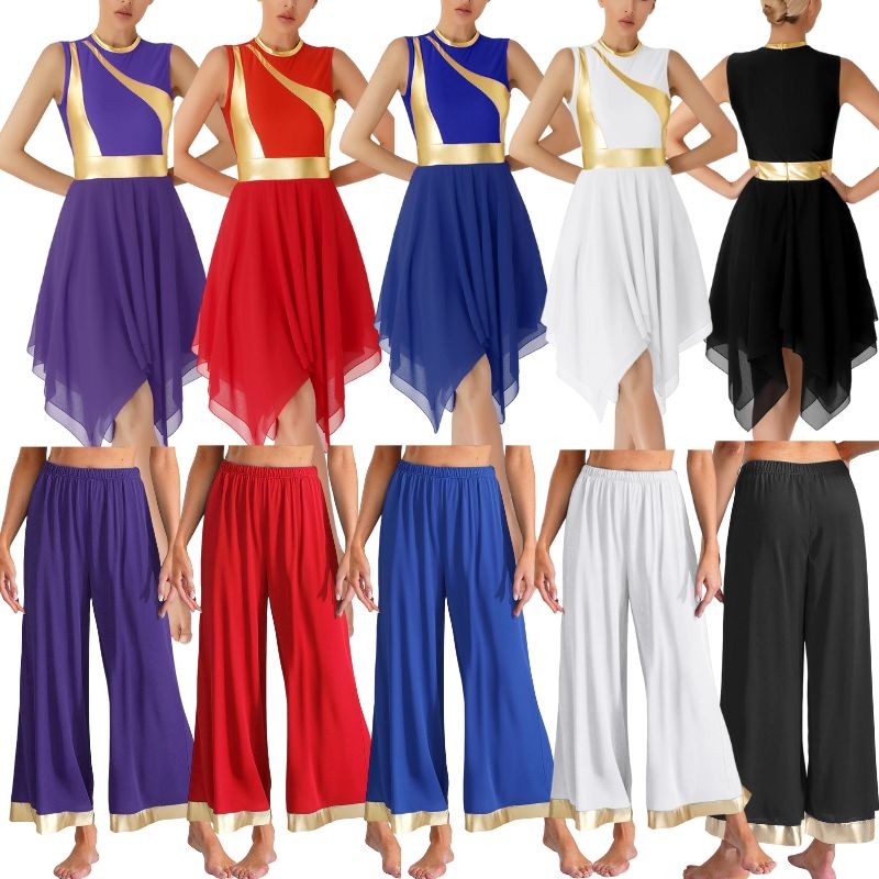 This 2-piece dance costume is suitable for various occasions such as worship, praise dance events, stage performances, and other dance-related activities.