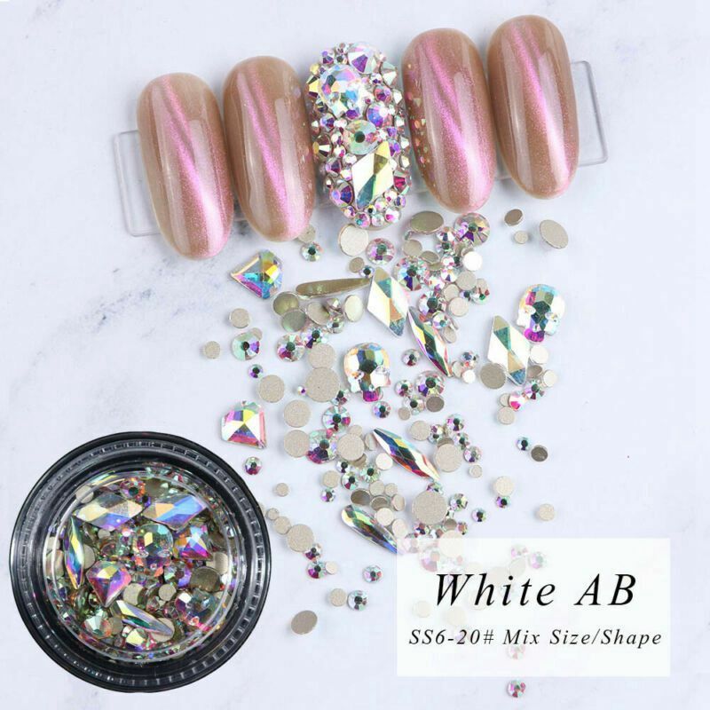 Design: AB Flatback Glass Rhinestones For Nails 3D Crystals Charm Nail Art Decoration Stones Shiny Gems Manicure Accessories