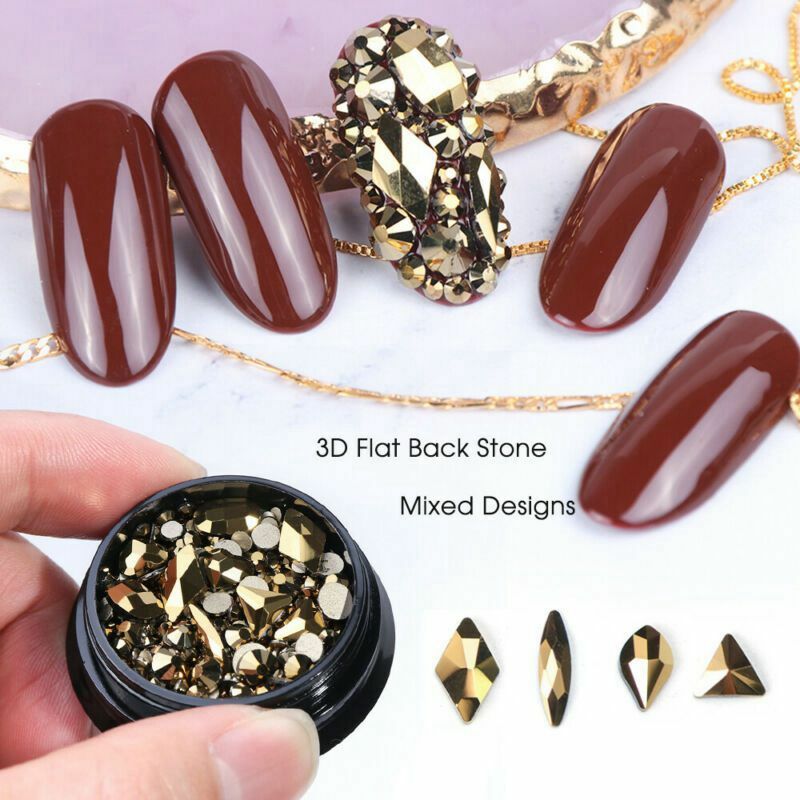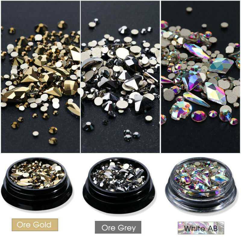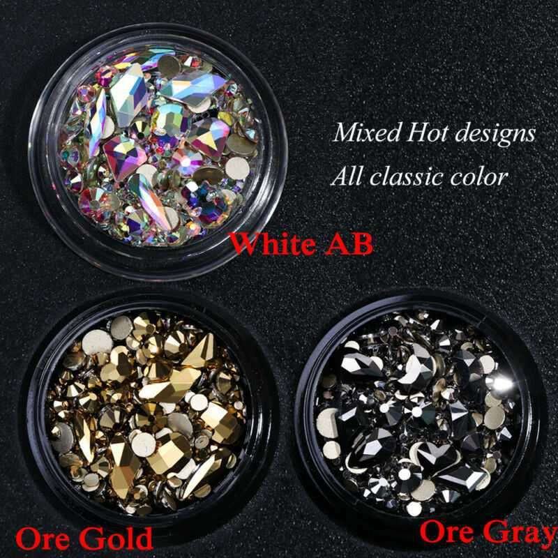 Glitter Gold Mixed 3D Nail Art Crystal Gems Rhinestones AB Shiny Stones Jewelry