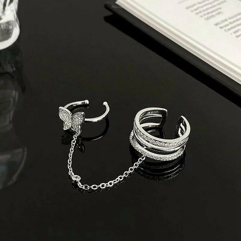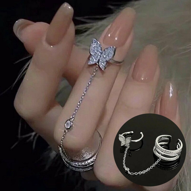 Butterfly Zircon Rings Women Party Beautiful Jewelry Open Rings Adjustable Chain