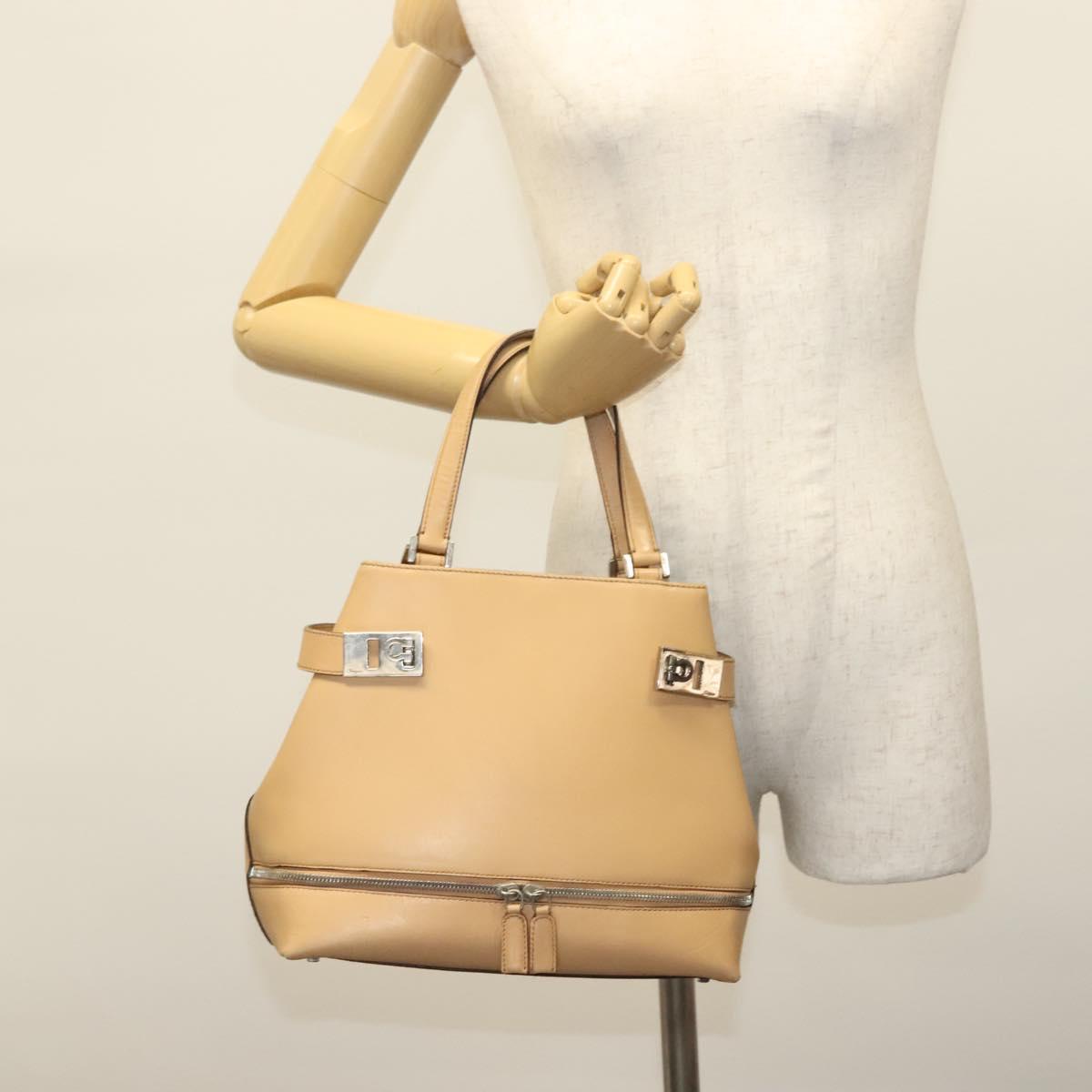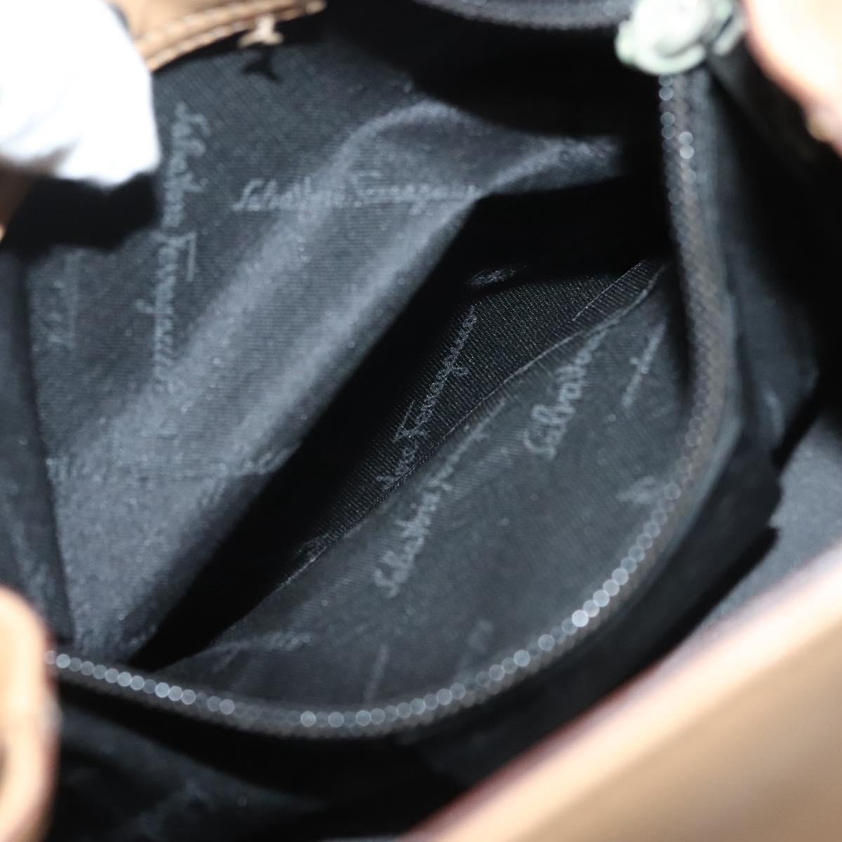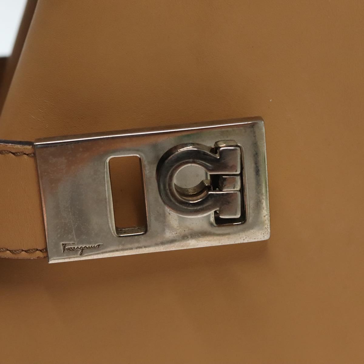 Salvatore Ferragamo Gancini Hand Bag Leather Brown gold Auth bs28925