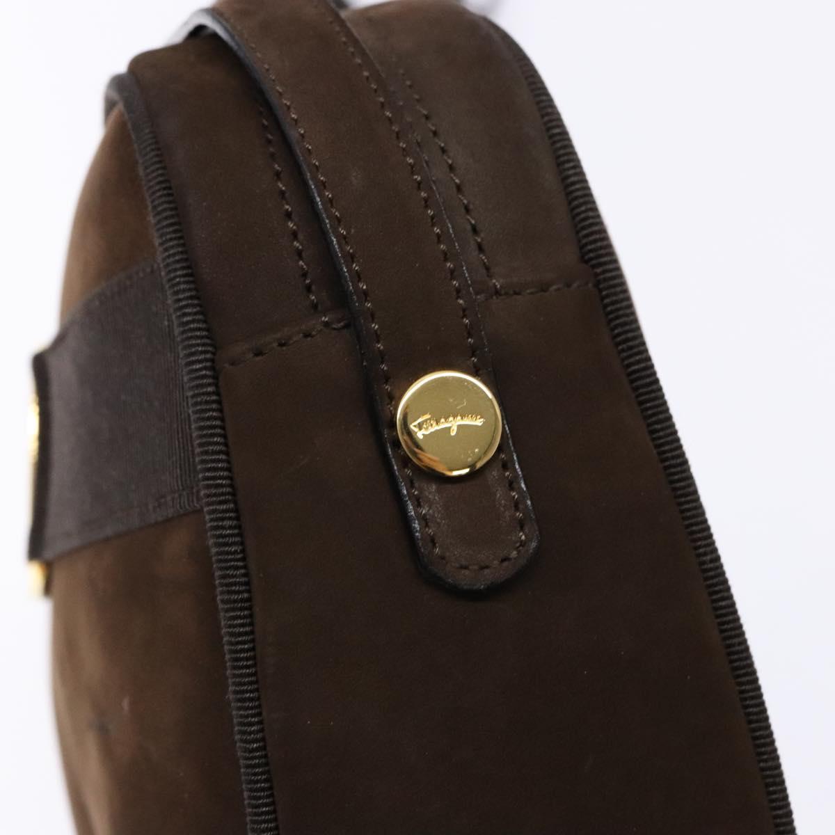Salvatore Ferragamo Vala Shoulder Bag Suede Brown Gold Auth gh619