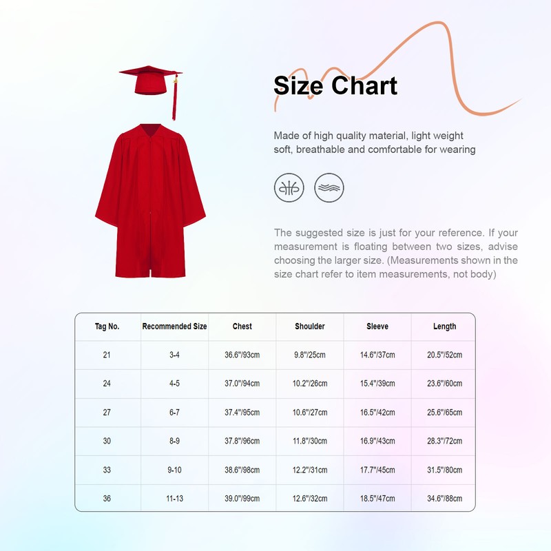 Set Include: 1x Graduation Gown, 1x Graduation Cap, 1x Graduation Tassel